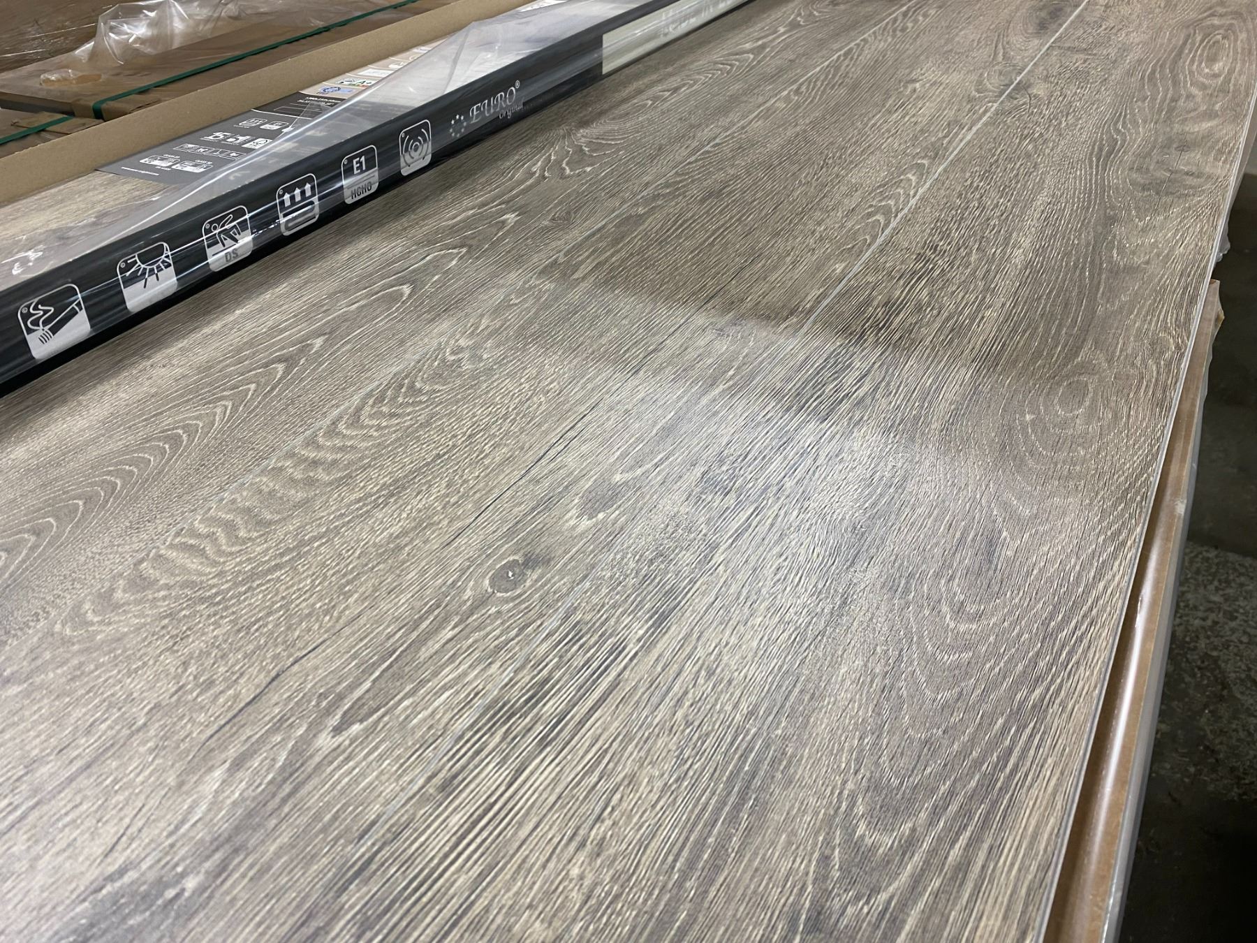 1,123.36 SQ FT TOTAL OF EURO ORIGINAL OLD TRAFFORD 10MM GLUELESS LAMINATE FLOORING 20.06 SQ FT PER BOX 56 BOXES 1,123.36 SQ FT TOTAL *MUST TAKE ALL ON PALLET*