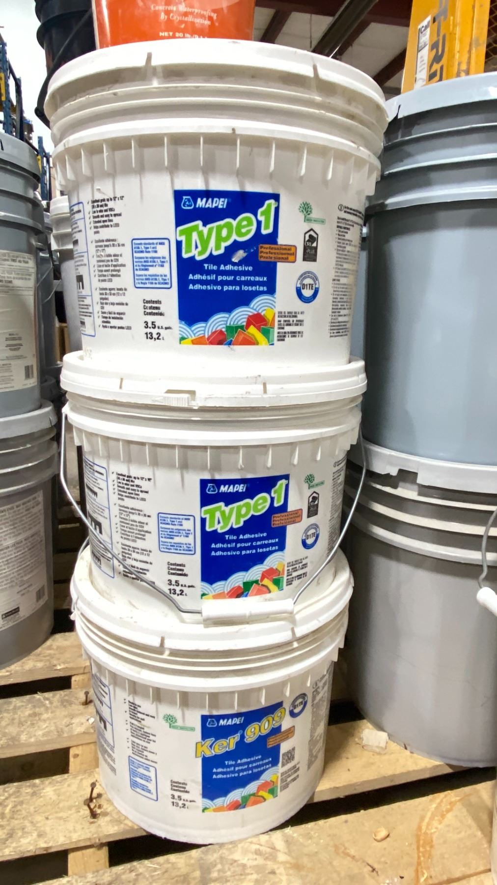 1- 13.2L BUCKET OF MAPEI KER 909 TILE ADHESIVE & 1 1/2 13.2L BUCKETS OF MAPEI TYPE 1 TILE ADHESIVE