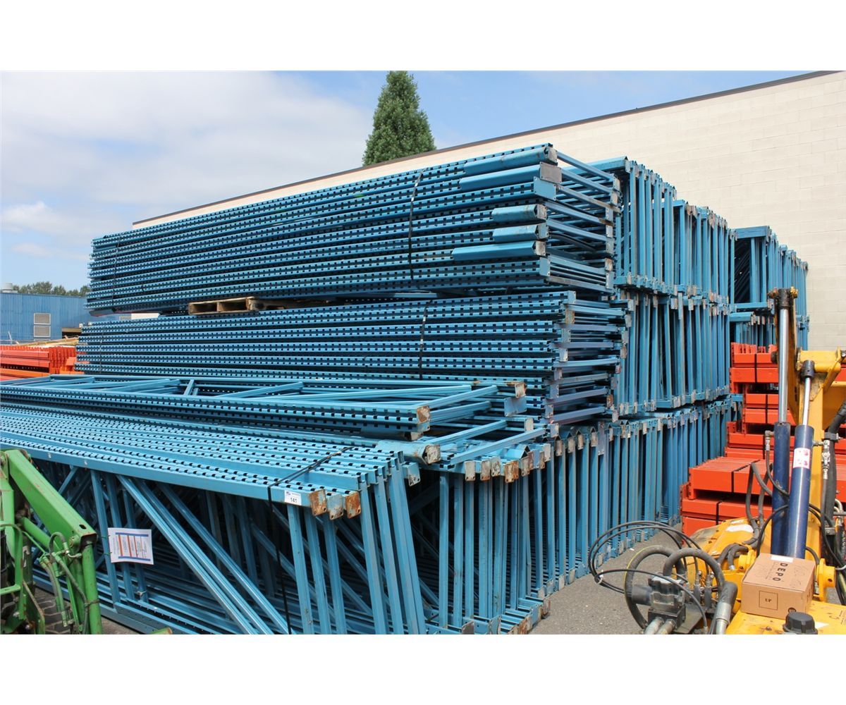1- 21' BLUE HEAVY DUTY PALLET RACKING UPRIGHT WITH 4- 10.5' X 6.5  5000 LB CAPACITY ORANGE