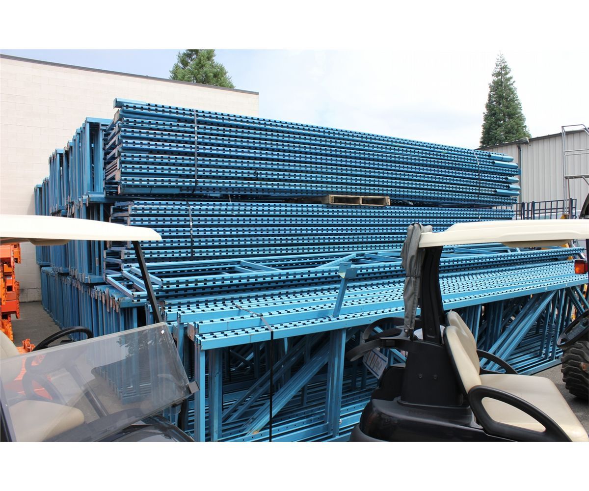 1- 21' BLUE HEAVY DUTY PALLET RACKING UPRIGHT WITH 8- 11' X 2.5  ORANGE CROSSBARS