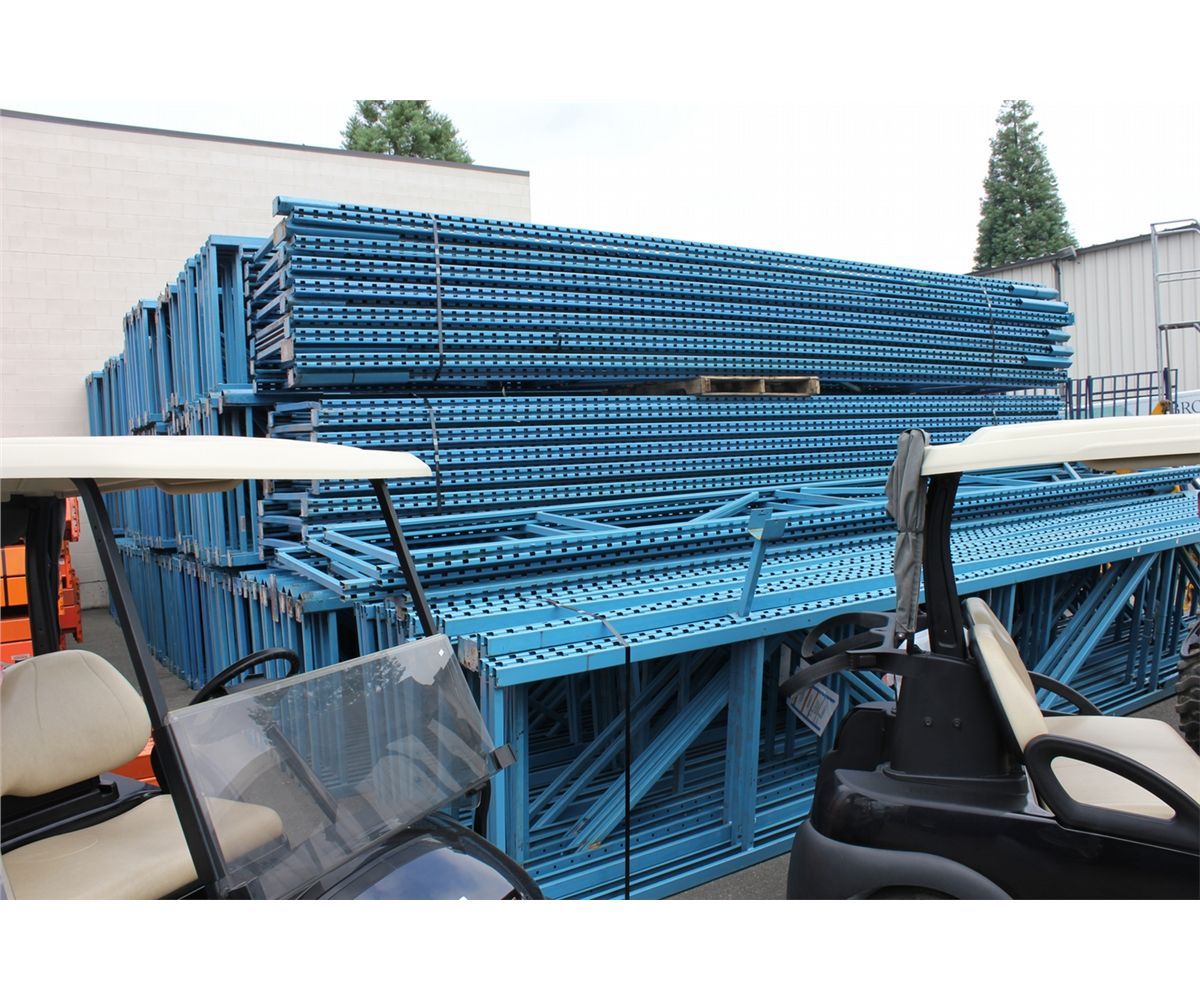 1- 21' BLUE HEAVY DUTY PALLET RACKING UPRIGHT WITH 8- 11' X 5.5  5000 LB CAPACITY ORANGE CROSSBARS