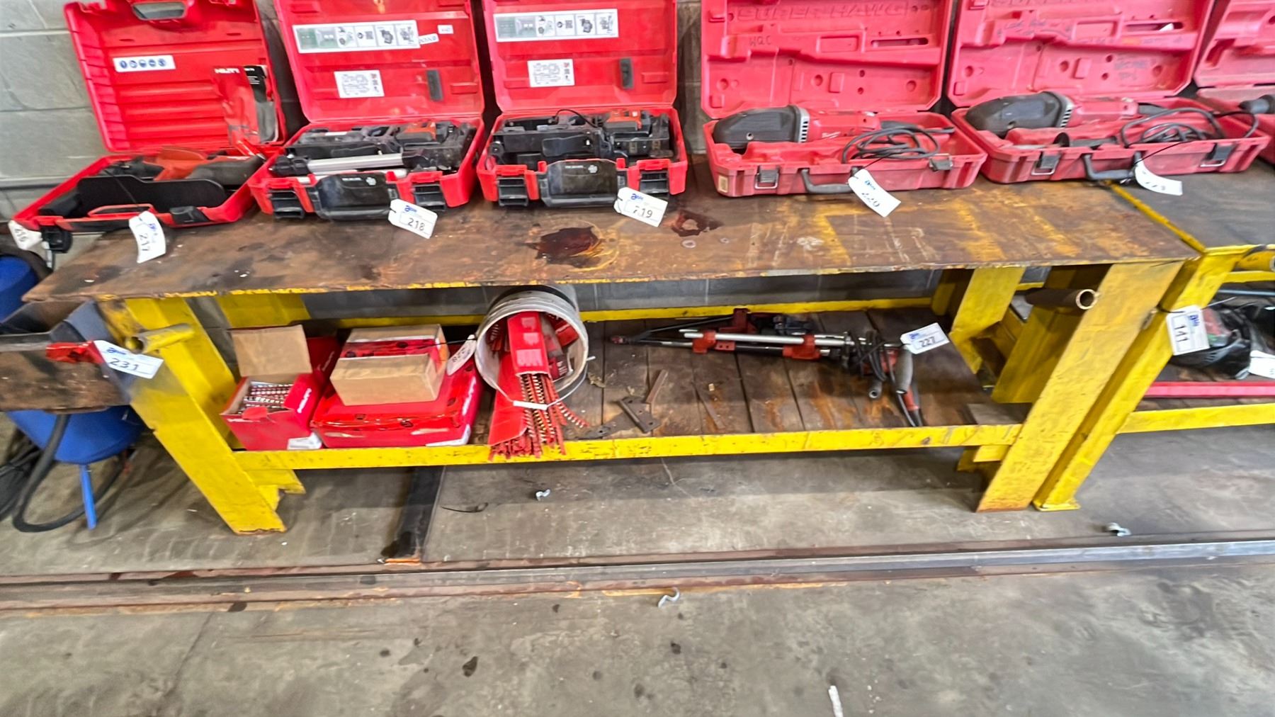 1/4" THICK METAL TOP MACHINE SHOP WORK TABLE *CONTENTS NOT INCLUDED* APPROX 8'L X 2'W X 3'H