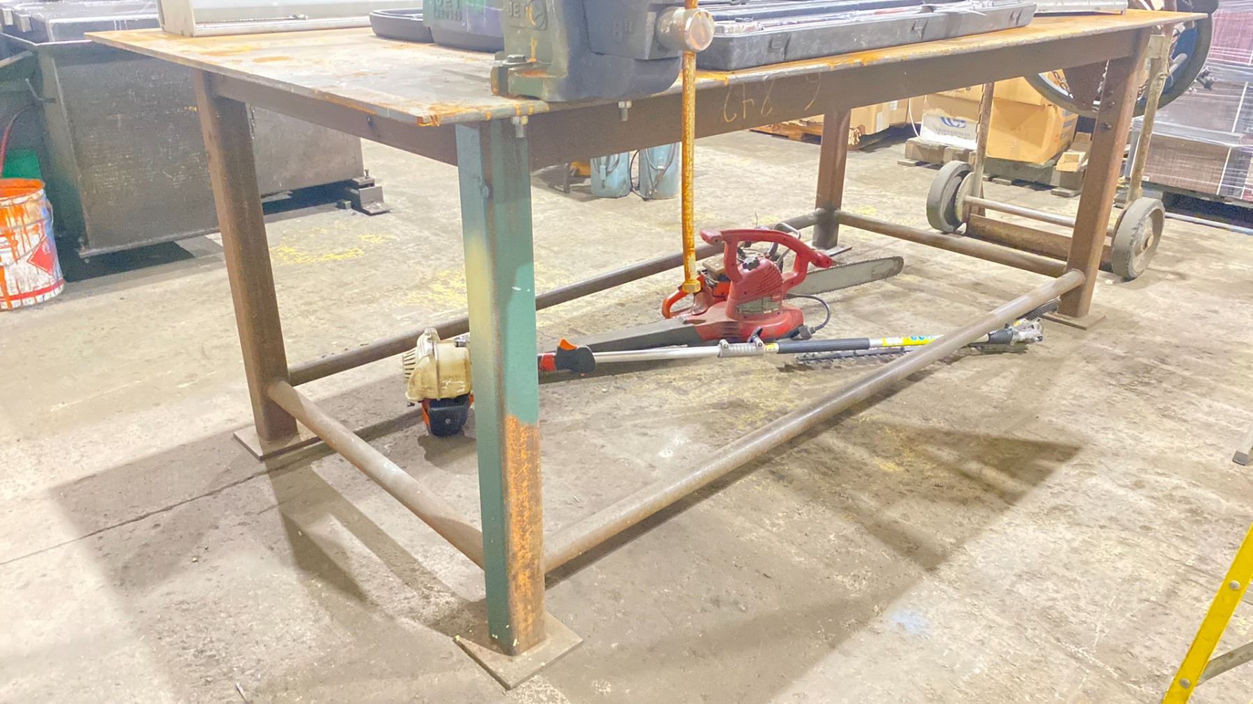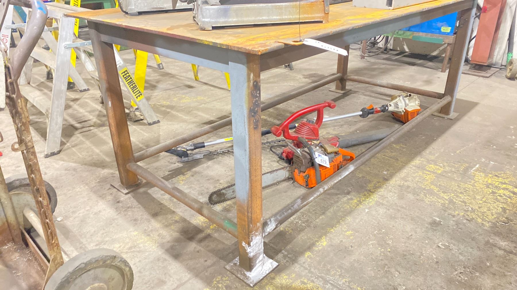 1/4" THICK STEEL TOP WITH STEEL BASE WORK TABLE - APPROX. 8'W X 4'D X 3'H