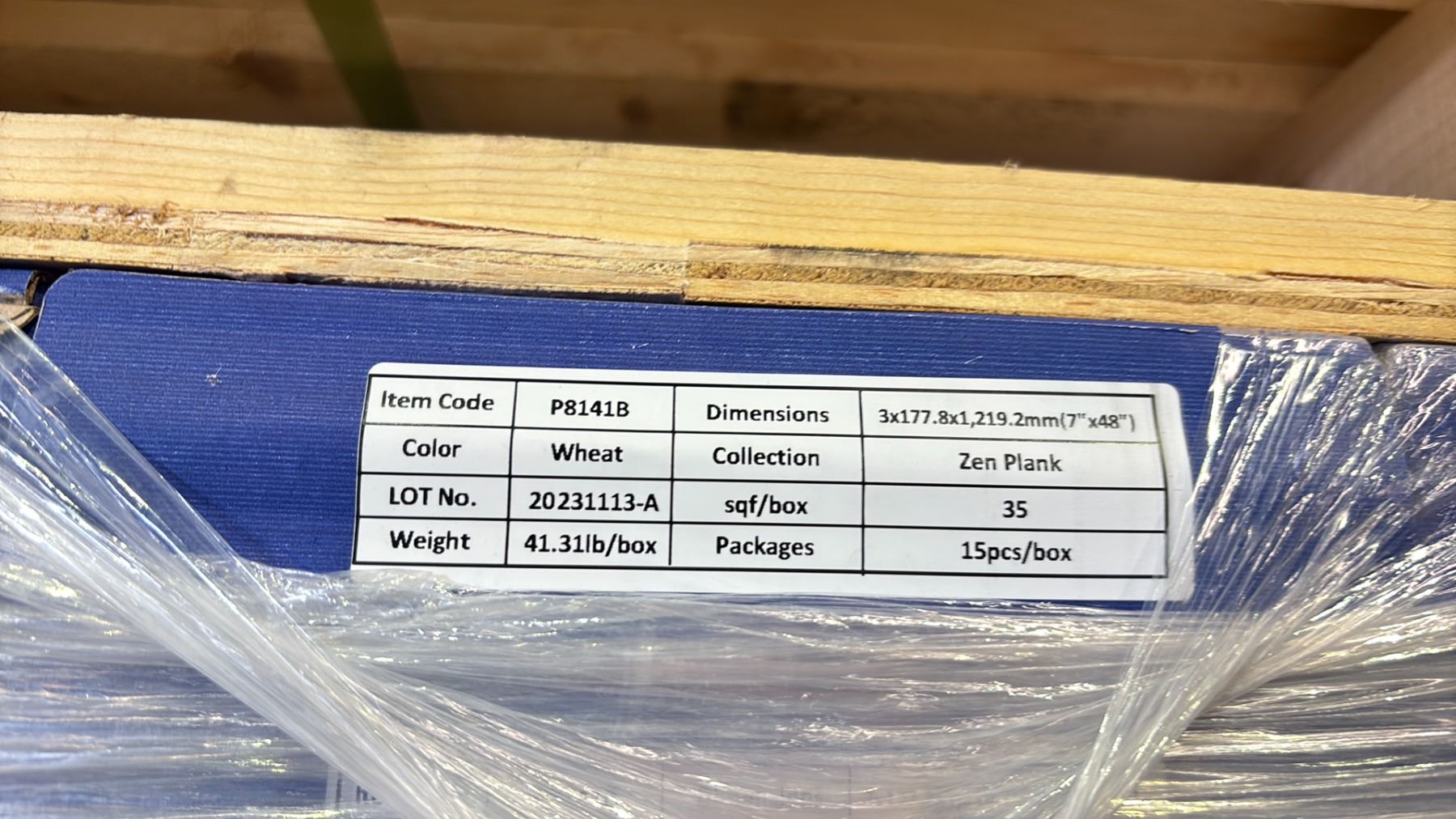 1,750 SQ FT OF FLOOR SCORE ZEN PLANK COLLECTION WHEAT 3MM GLUELESS LAMINATE FLOORING 35 SQ FT PER BOX 50 BOXES 1,750 SQ FT TOTAL *MUST TAKE ALL ON PALLET*