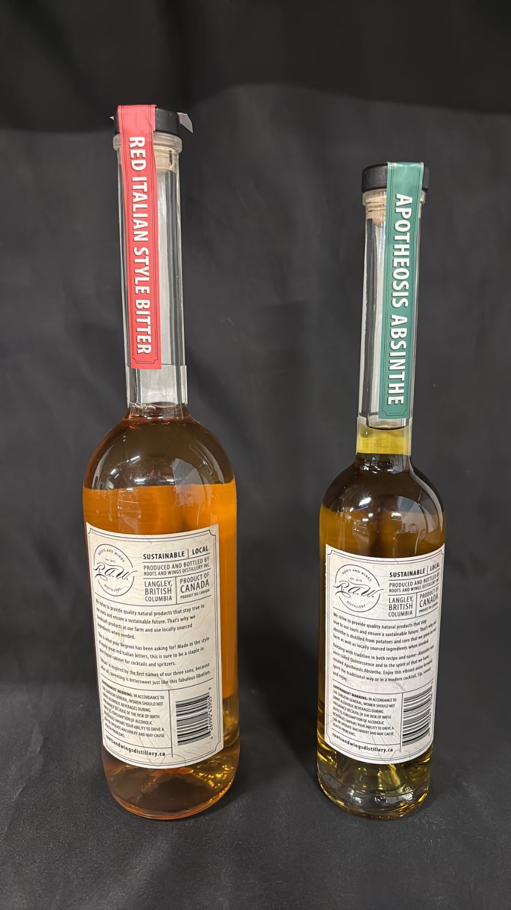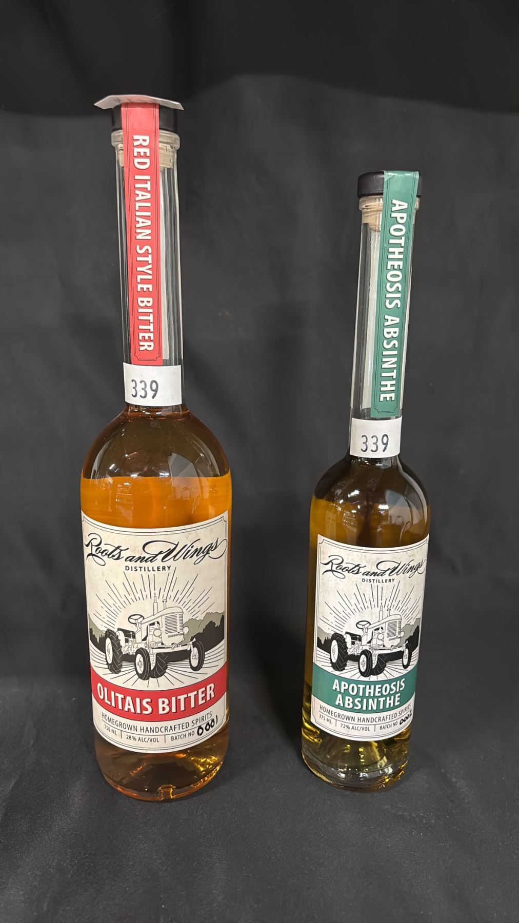 1 - 750ML BOTTLE OF ROOTS AND WINGS DISTILLERY OLITAIS BITTER WHISKEY & 1 375ML BOTTLE OF ROOTS AND WINGS DISTILLERY APOTHEOSIS ABSINTHE