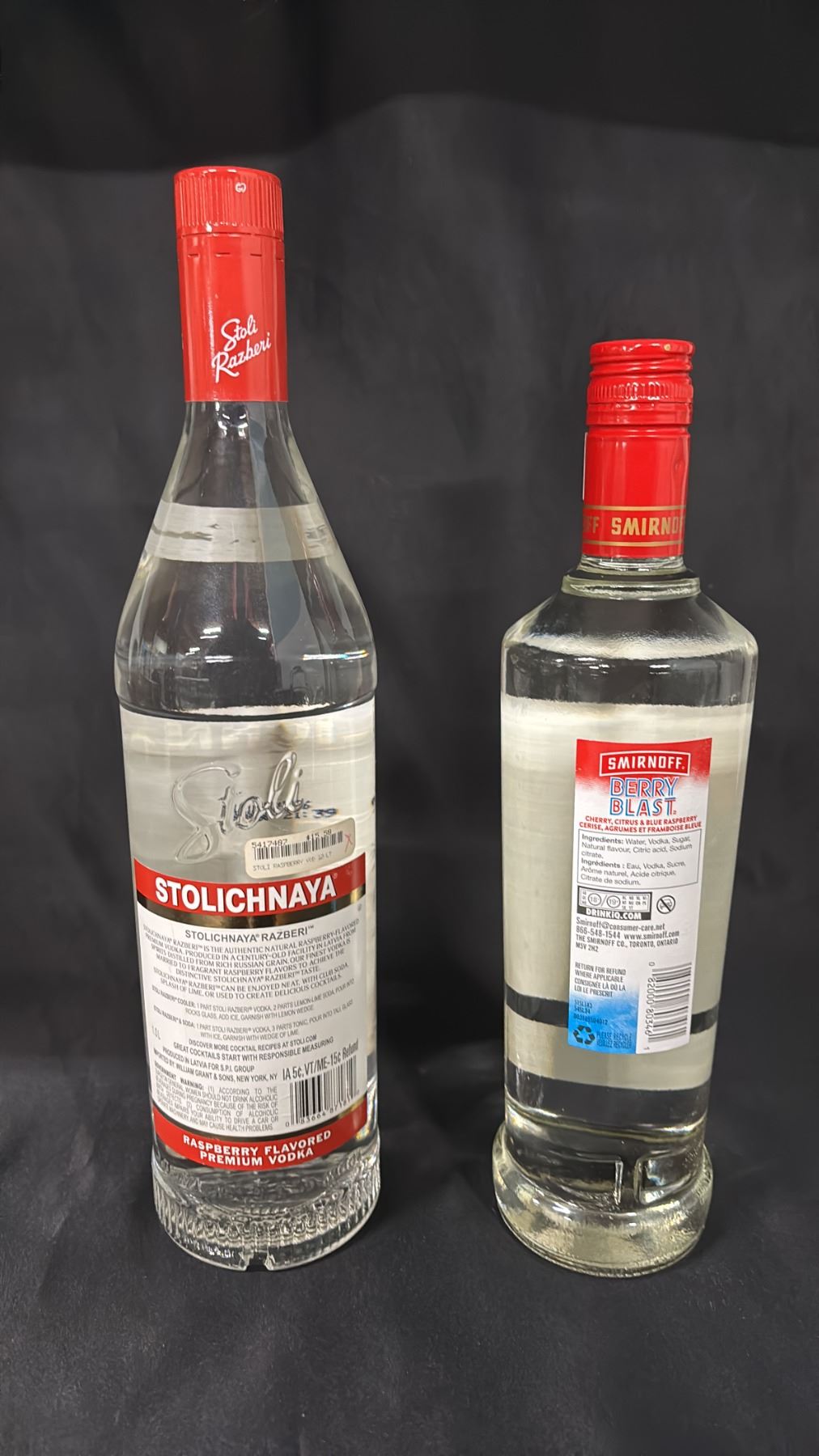 1 - 750ML BOTTLE OF SMIRNOFF BERRY BLAST VODKA & 1 - 1 LITRE BOTTLE OF STOLICHNAYA STOLI RAZBERI VODKA
