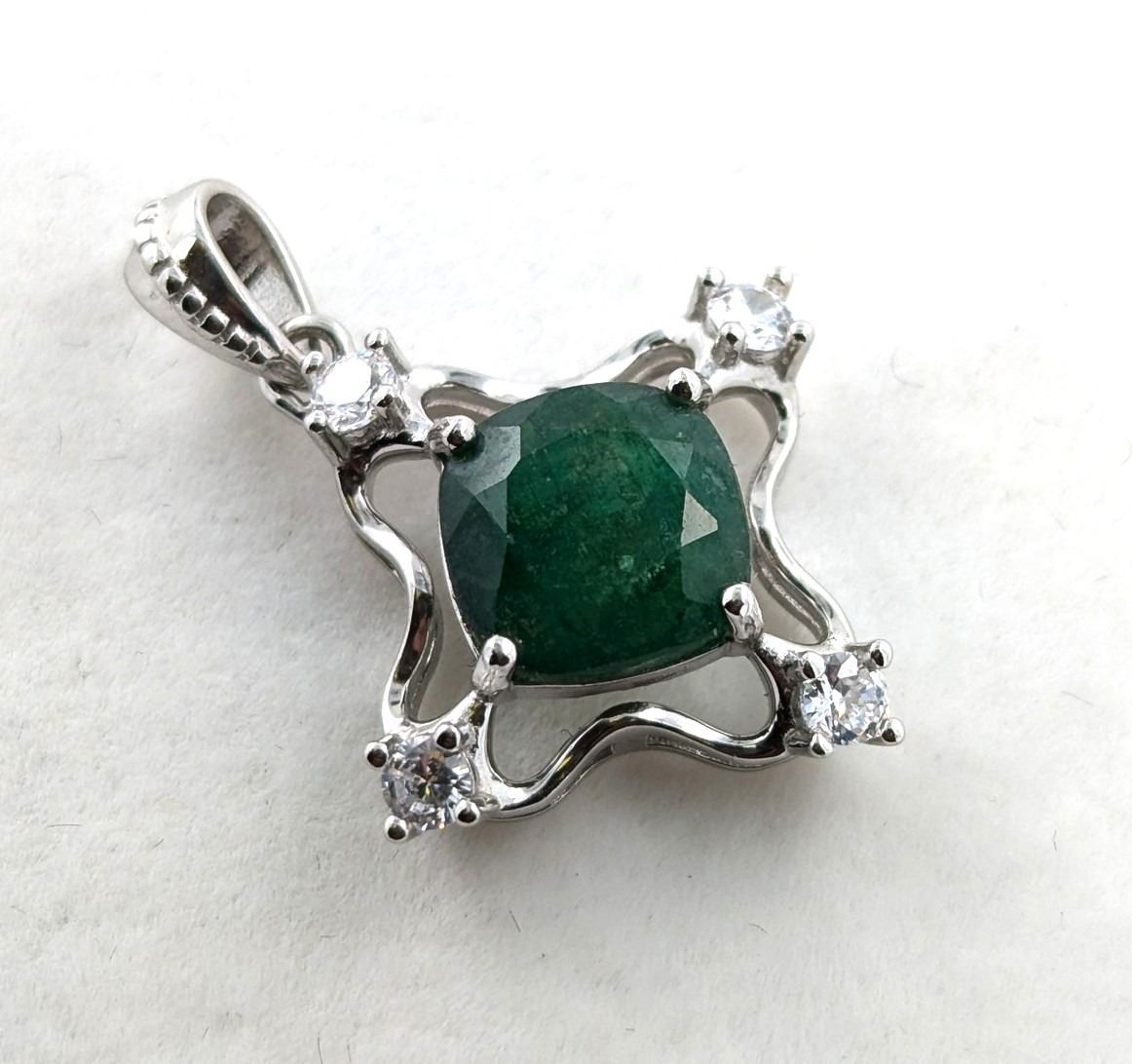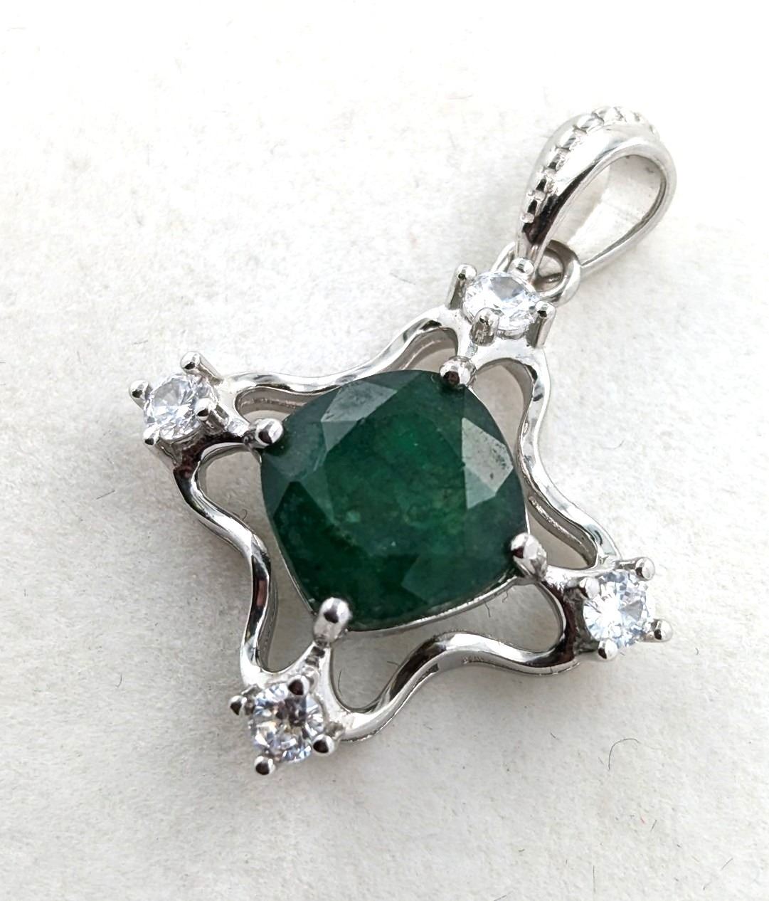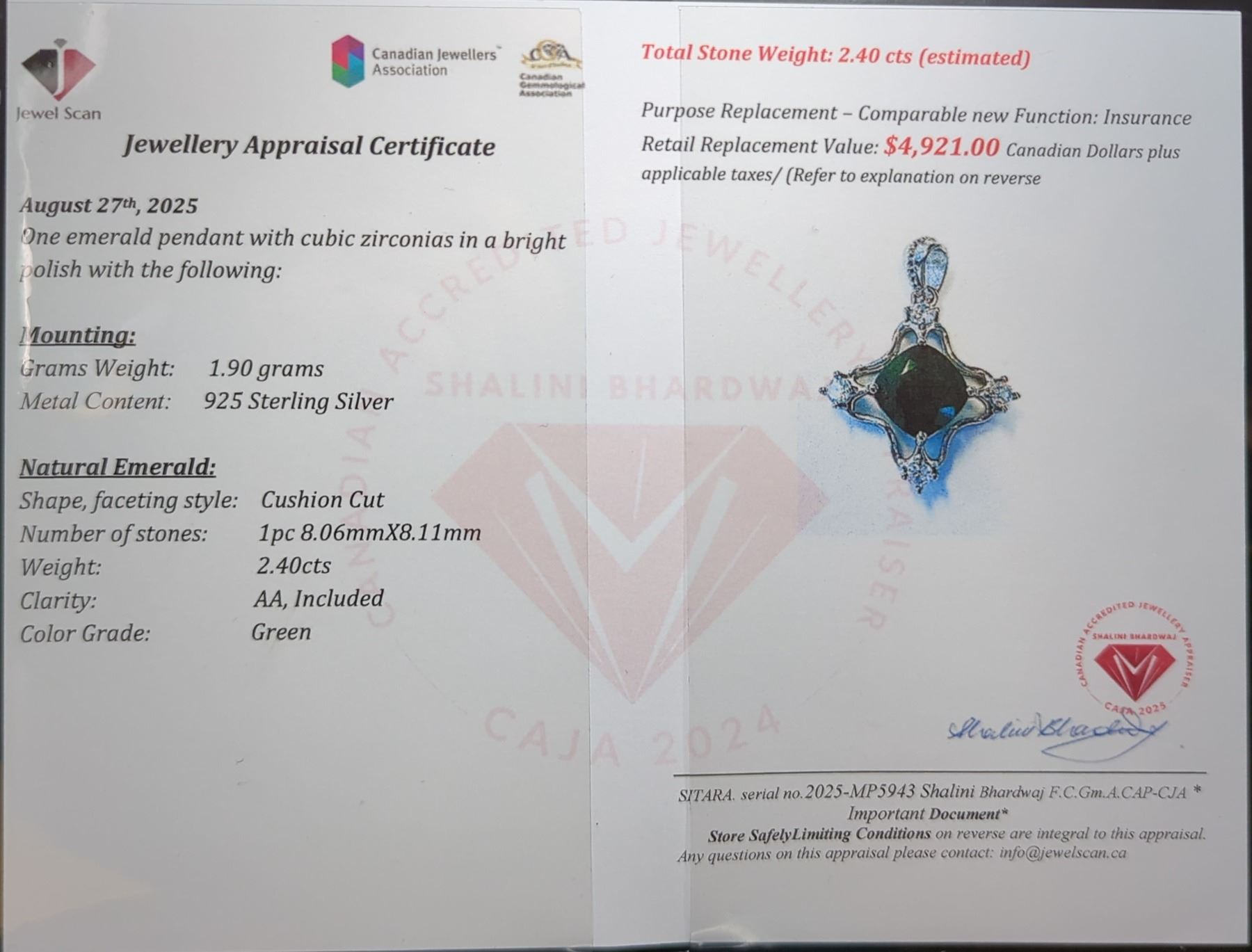 1.9 CT CERTIFIED SILVER EMERALD GEMSTONE PENDANT ($4,921 APPRAISAL, APPRAISAL NOT GUARANTEED)