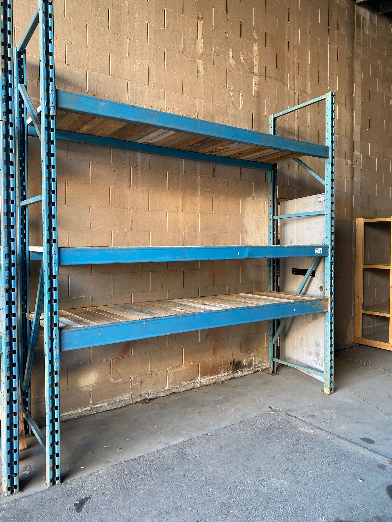1 BAY OF 3 SHELF PALLET RACKING INCLUDES: 2X 10' UPRIGHTS 6X 104" SHELF CROSS BARS, SHELF WIDTH 34"