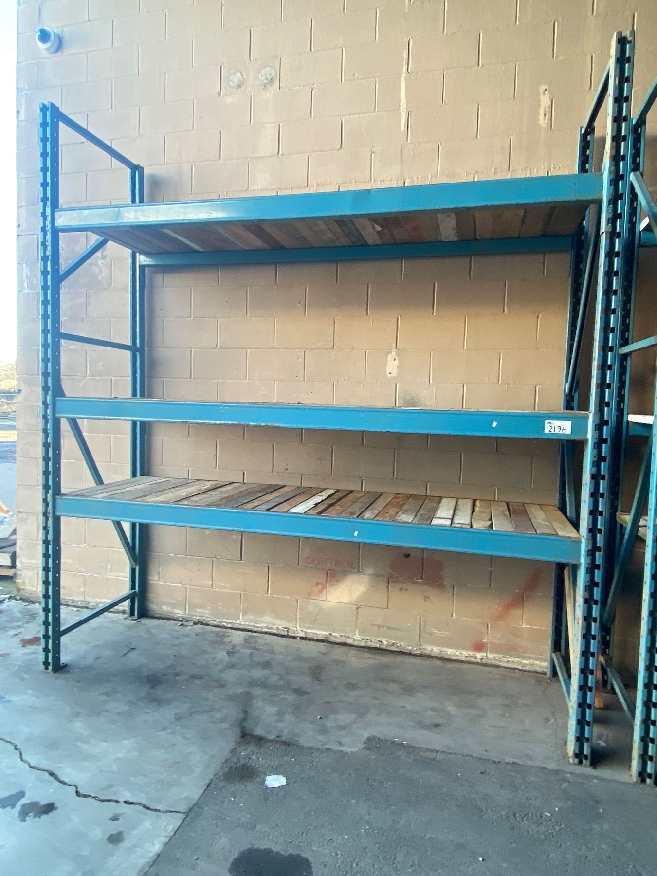 1 BAY OF 3 SHELF PALLET RACKING INCLUDES: 2X 10' UPRIGHTS 6X 104" SHELF CROSS BARS, SHELF WIDTH 34"