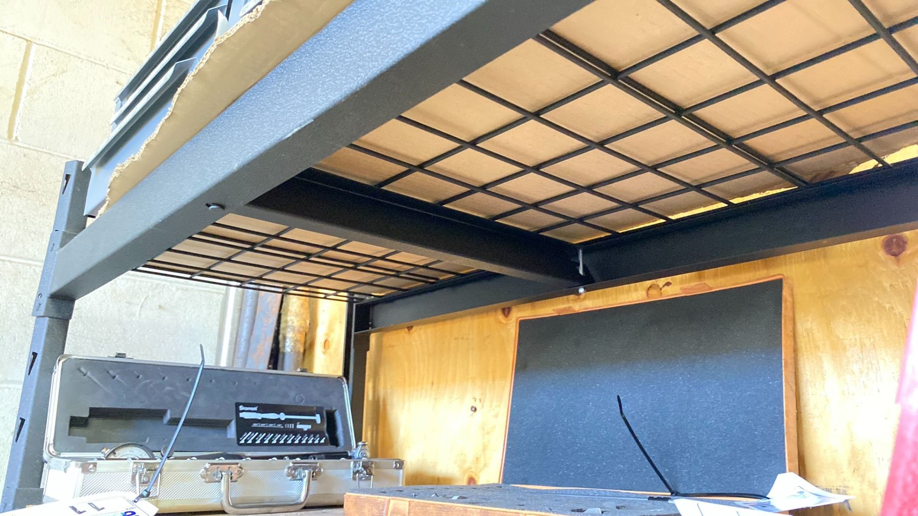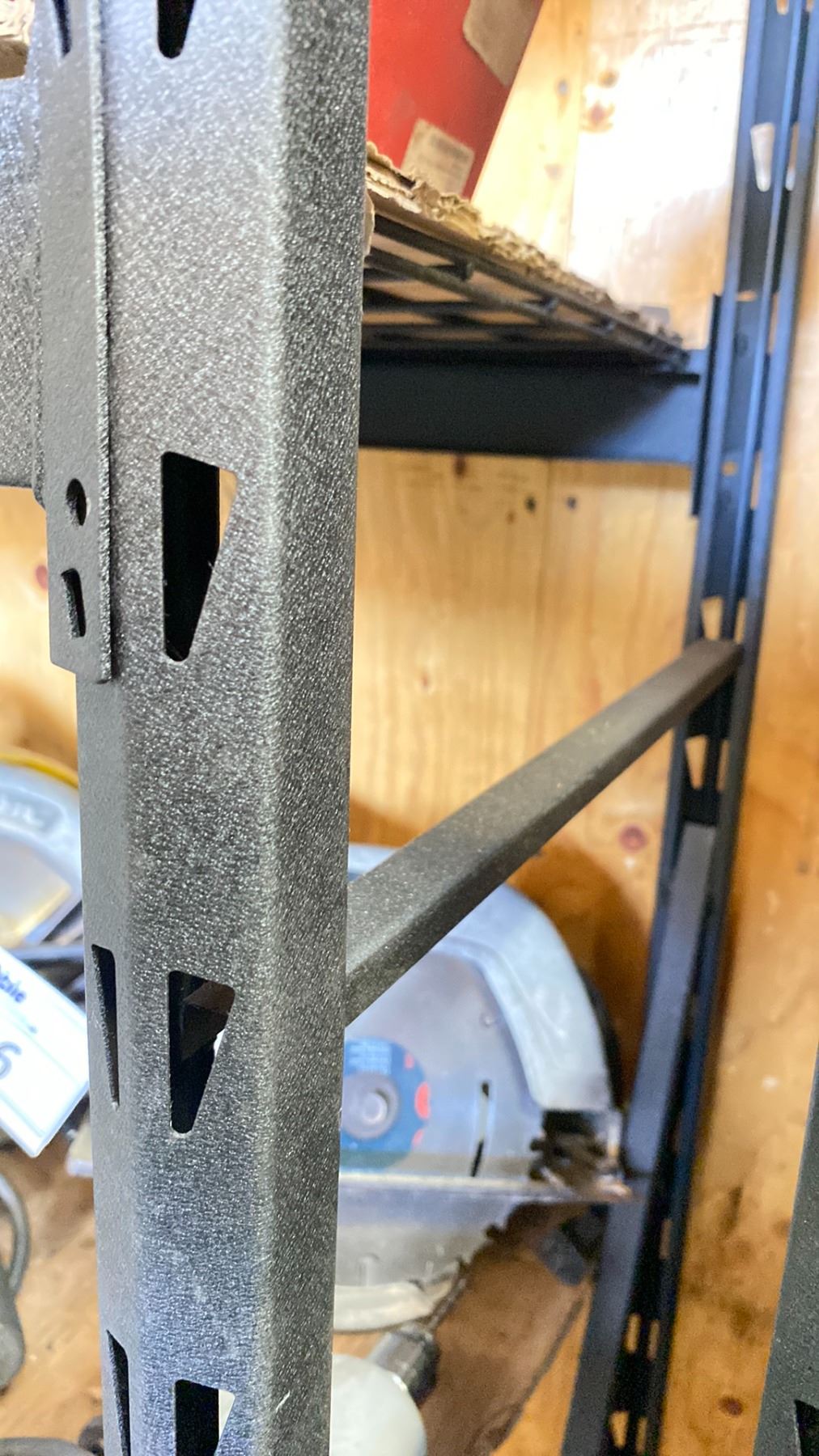 1 BLACK METAL STORGE RACK APPROX 6 FT H, 3.5 FT L, 1.5 FT W