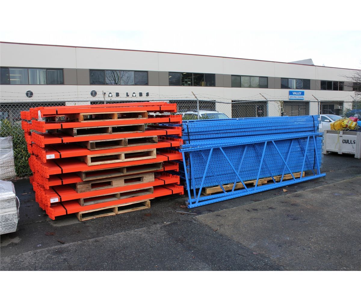 1 BLUE 4' X 10' LIGHT DUTY PALLET RACK UPRIGHT AND 8 ORANGE 6' CROSS BARS