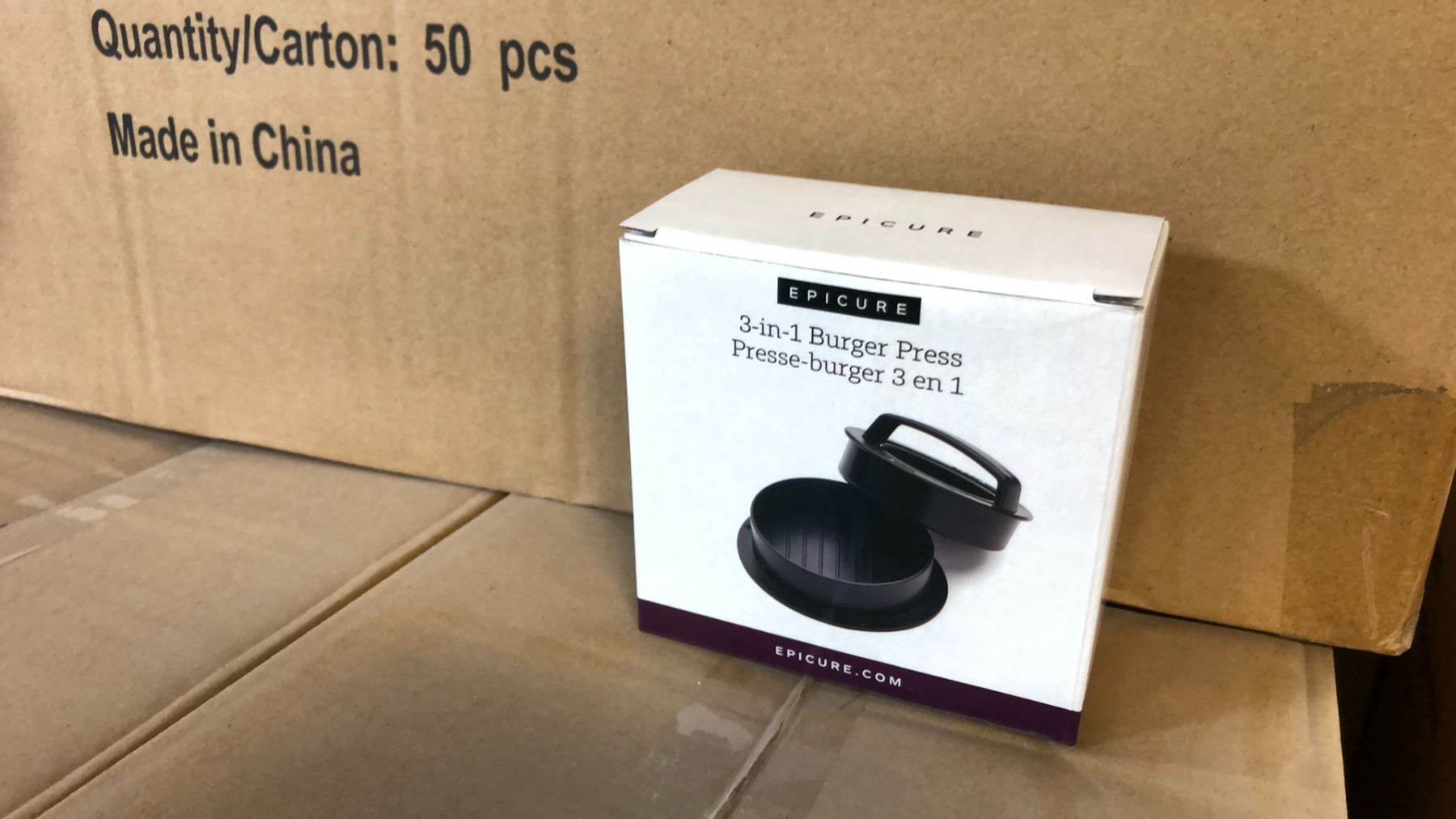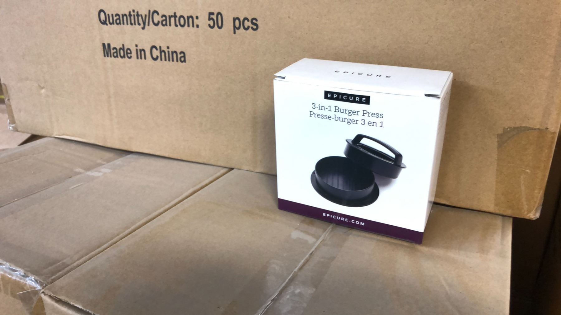 1 BOX OF EPICURE BLACK PLASTIC 3-IN-1 BURGER PRESSES 50 PCS. PER BOX