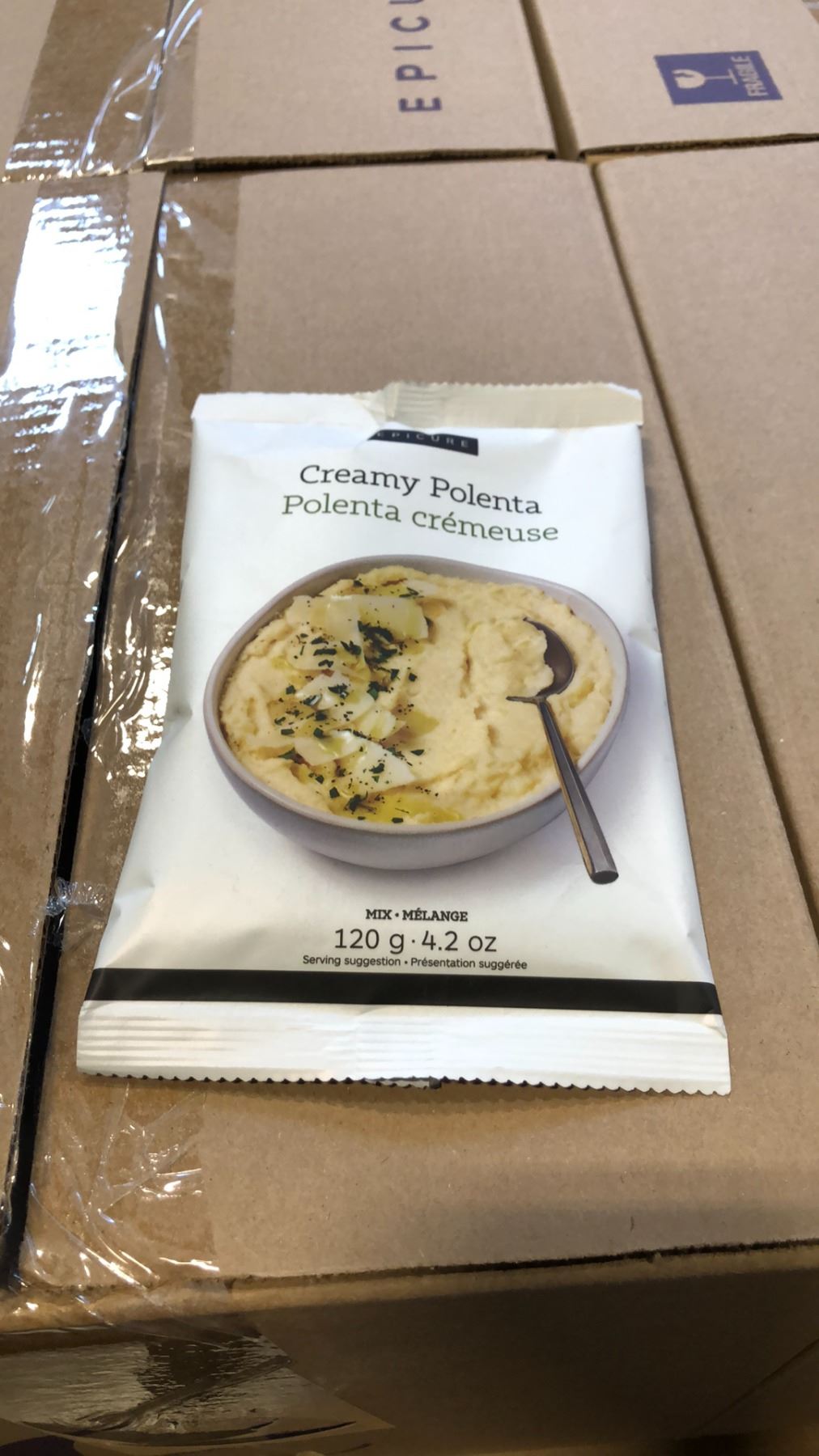 1 BOX OF EPICURE CREAMY POLENTA MIX 120G BAGS, 80 BAGS PER BOX