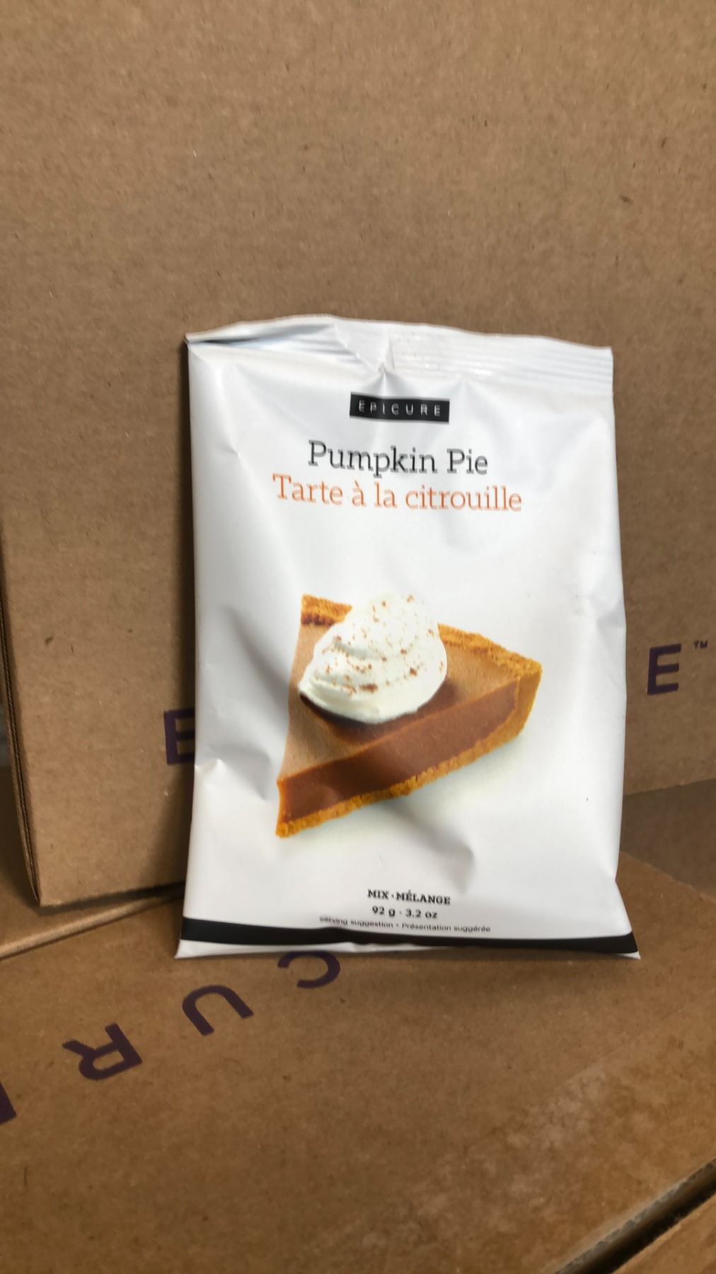 1 BOX OF EPICURE PUMPKIN PIE MIX 92G BAGS, 200 BAGS PER BOX