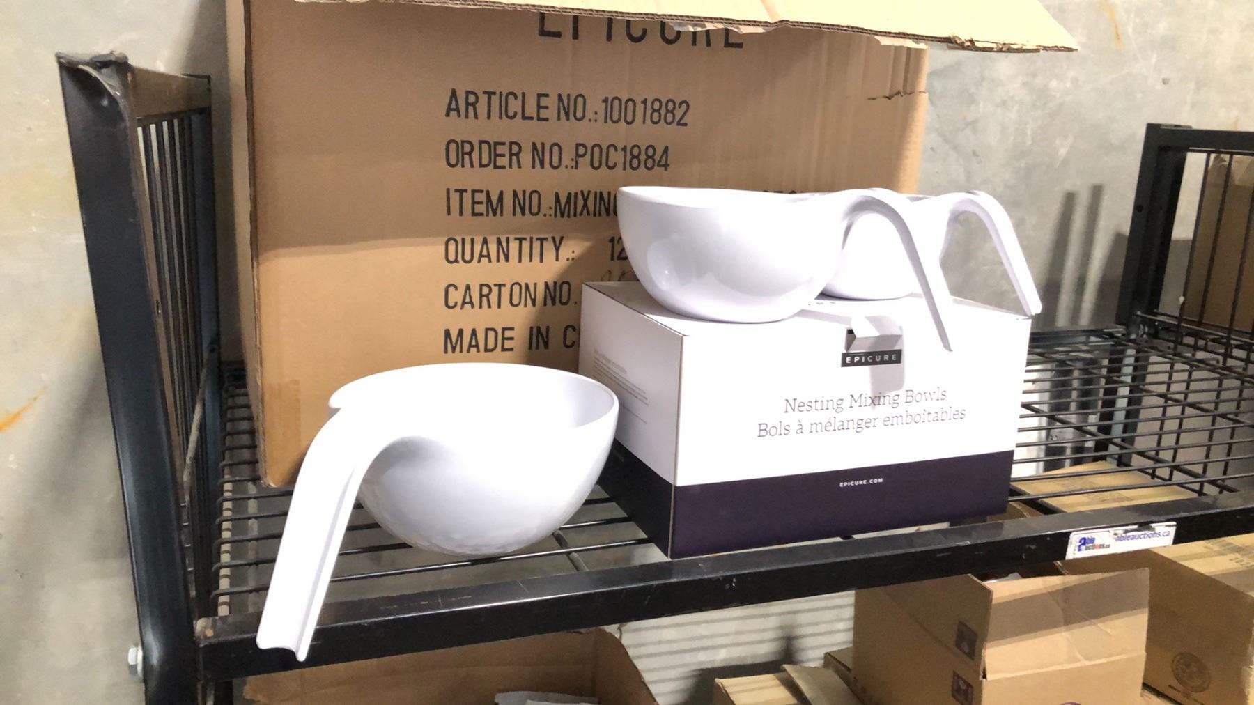 1 BOX OF EPICURE WHITE PLASTIC NESTING MIXING BOWLS 8 SETS PER BOX, SET OF 3