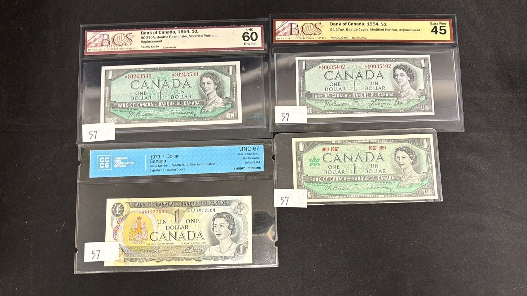 $1 CANADIAN BANK NOTES 1954, 1973, 1967, & 1954