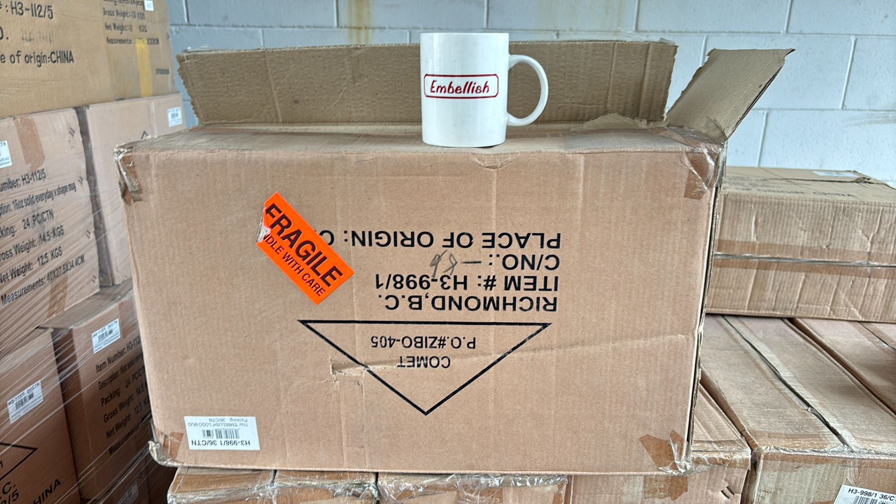 1 CASE OF 11OZ "EMBELLISH" LOGO MUGS ( 36 PER CASE )