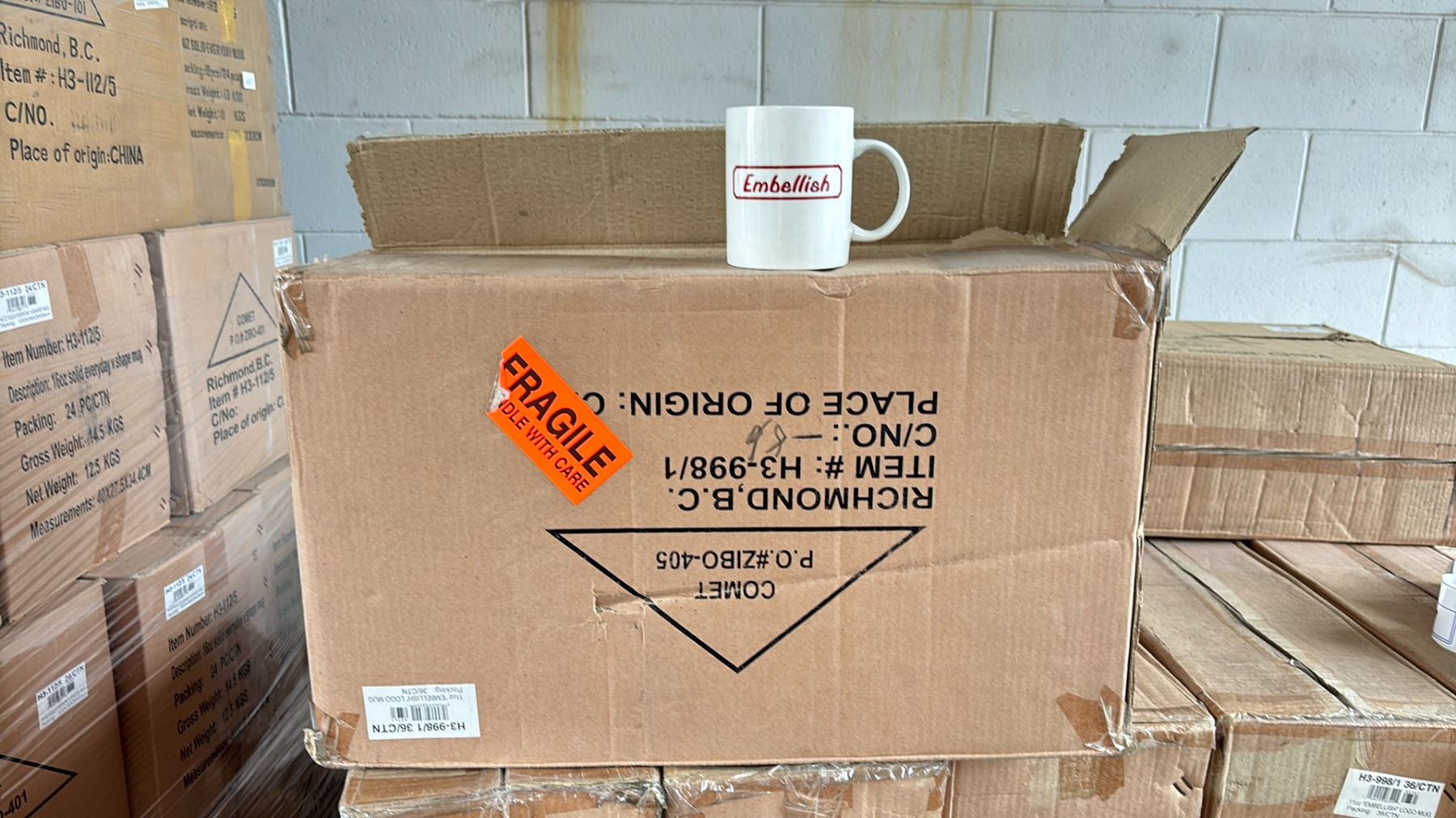 1 CASE OF 11OZ "EMBELLISH" LOGO MUGS ( 36 PER CASE )