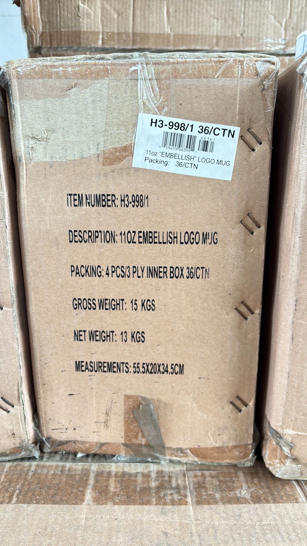 1 CASE OF 11OZ  EMBELLISH  LOGO MUGS ( 36 PER CASE )