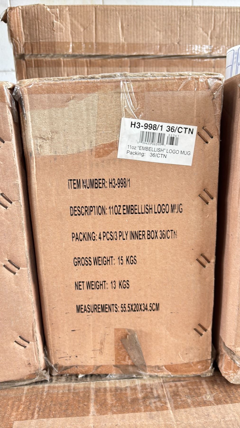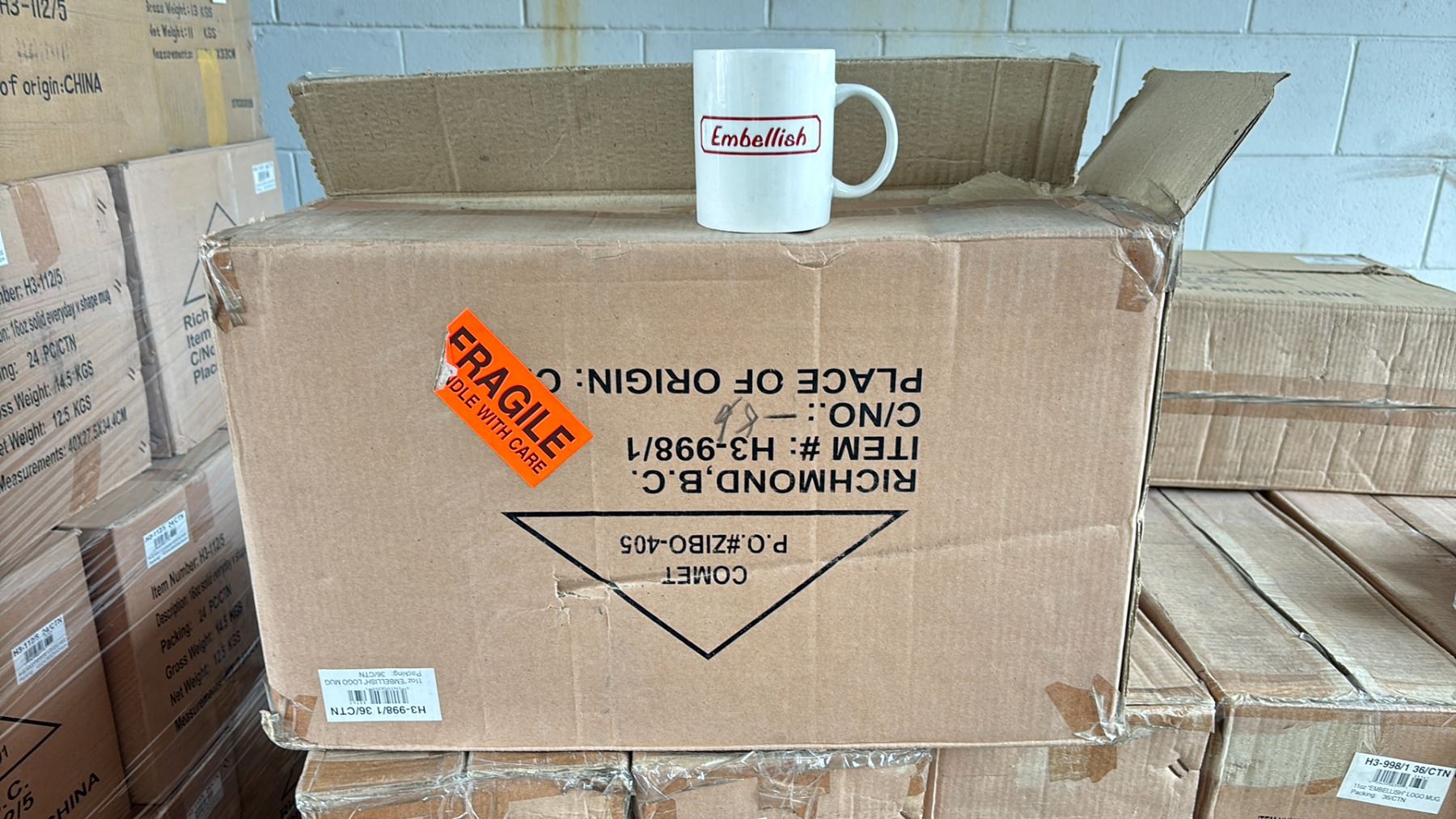 1 CASE OF 11OZ "EMBELLISH" LOGO MUGS ( 36 PER CASE )