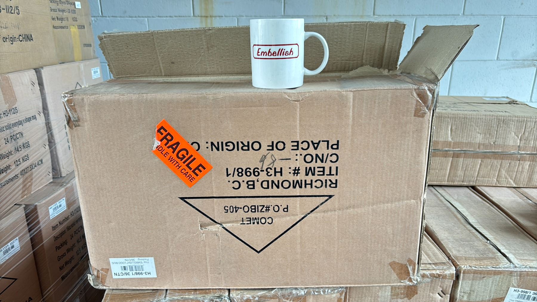 1 CASE OF 11OZ "EMBELLISH" LOGO MUGS ( 36 PER CASE )