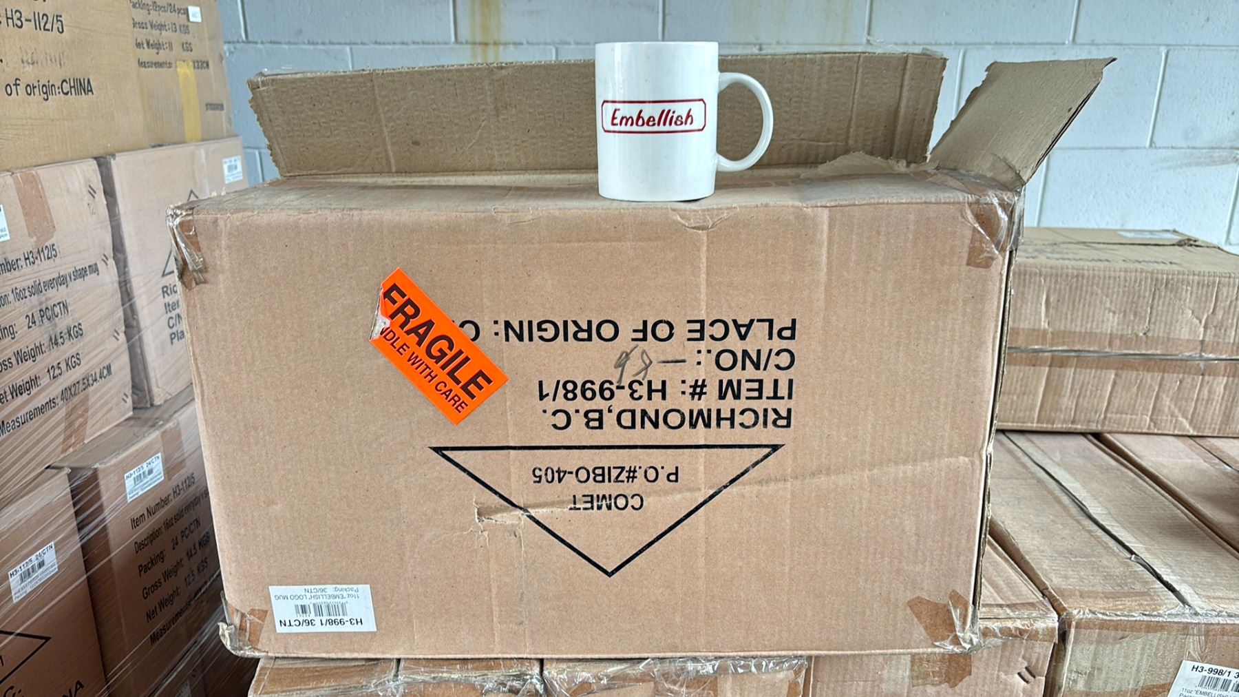 1 CASE OF 11OZ "EMBELLISH" LOGO MUGS ( 36 PER CASE )