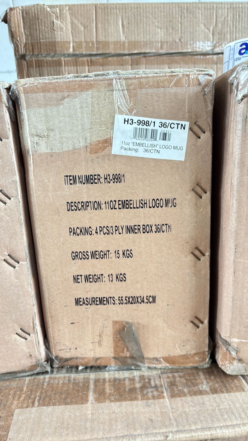 1 CASE OF 11OZ  EMBELLISH  LOGO MUGS ( 36 PER CASE )