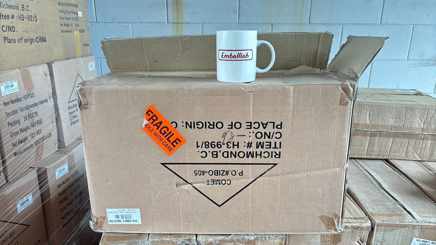 1 CASE OF 11OZ "EMBELLISH" LOGO MUGS ( 36 PER CASE )