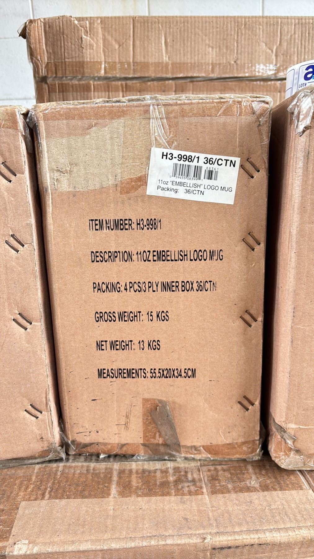 1 CASE OF 11OZ  EMBELLISH  LOGO MUGS ( 36 PER CASE )