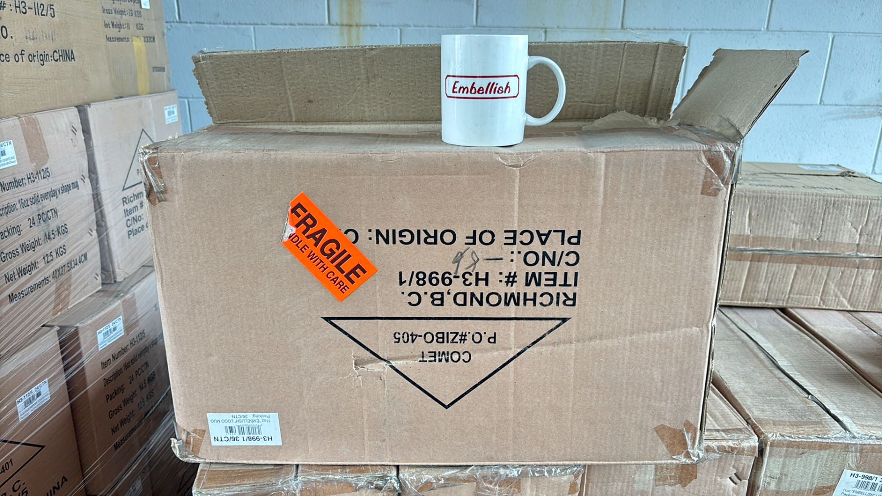 1 CASE OF 11OZ "EMBELLISH" LOGO MUGS ( 36 PER CASE )