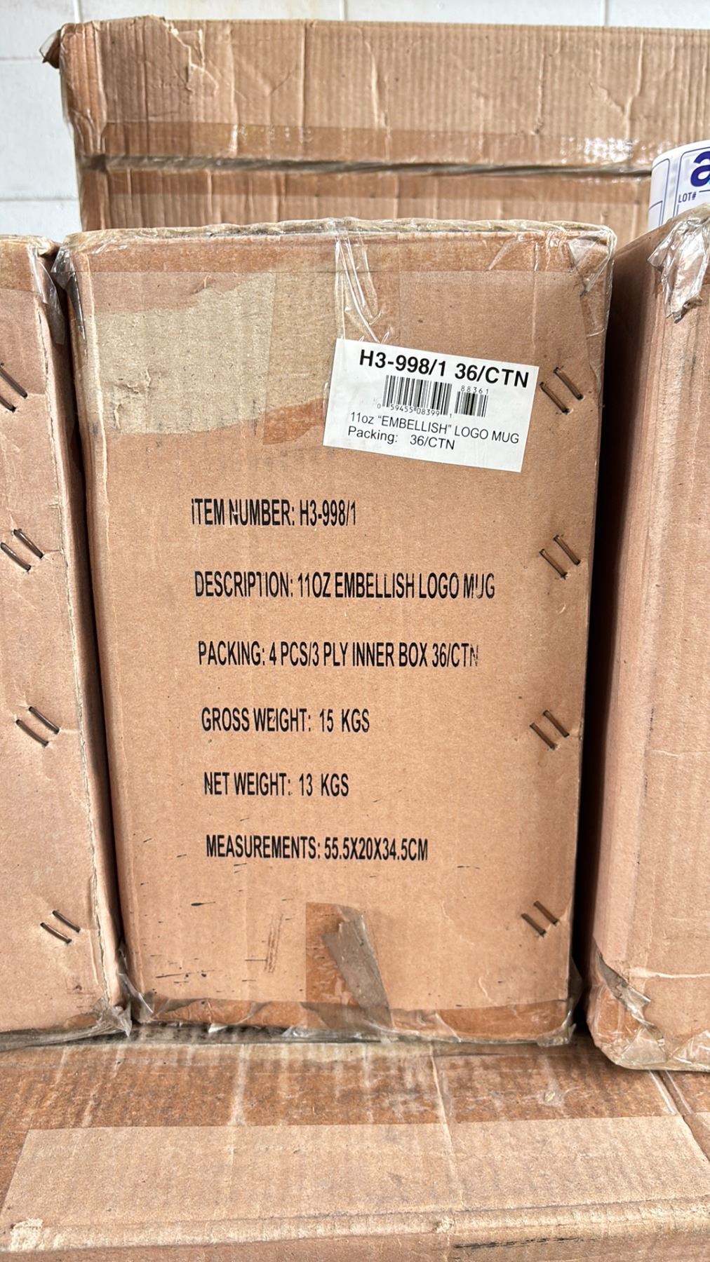 1 CASE OF 11OZ  EMBELLISH  LOGO MUGS ( 36 PER CASE )