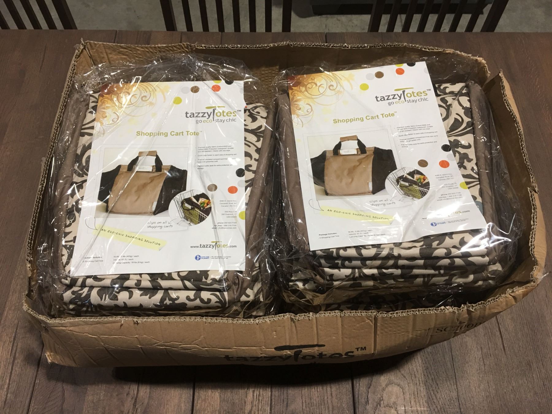 1 CASE OF 16 - TAZZY TOTES GO ECO STAY CHIC SHOPPING CART TOTES - PATTERNED BROWN (C)