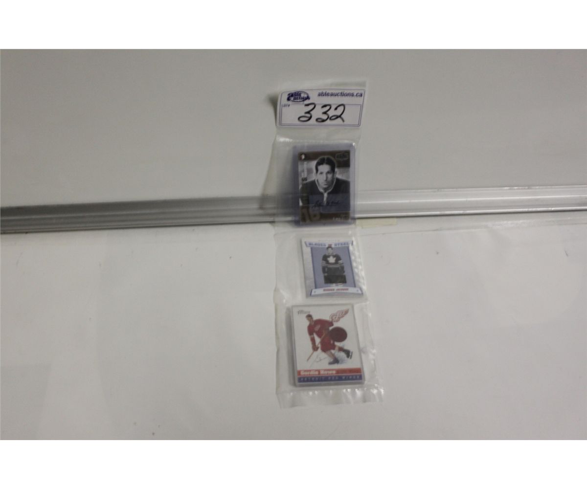 1 GORDIE HOWE TOPPS HERITAGE MATERIAL CARD; 1 BUSHER JACKSON GAME-USED SKATE; 1 ELMER LACH AUTOGRAPHED HEROES & PROSPECTS CARD