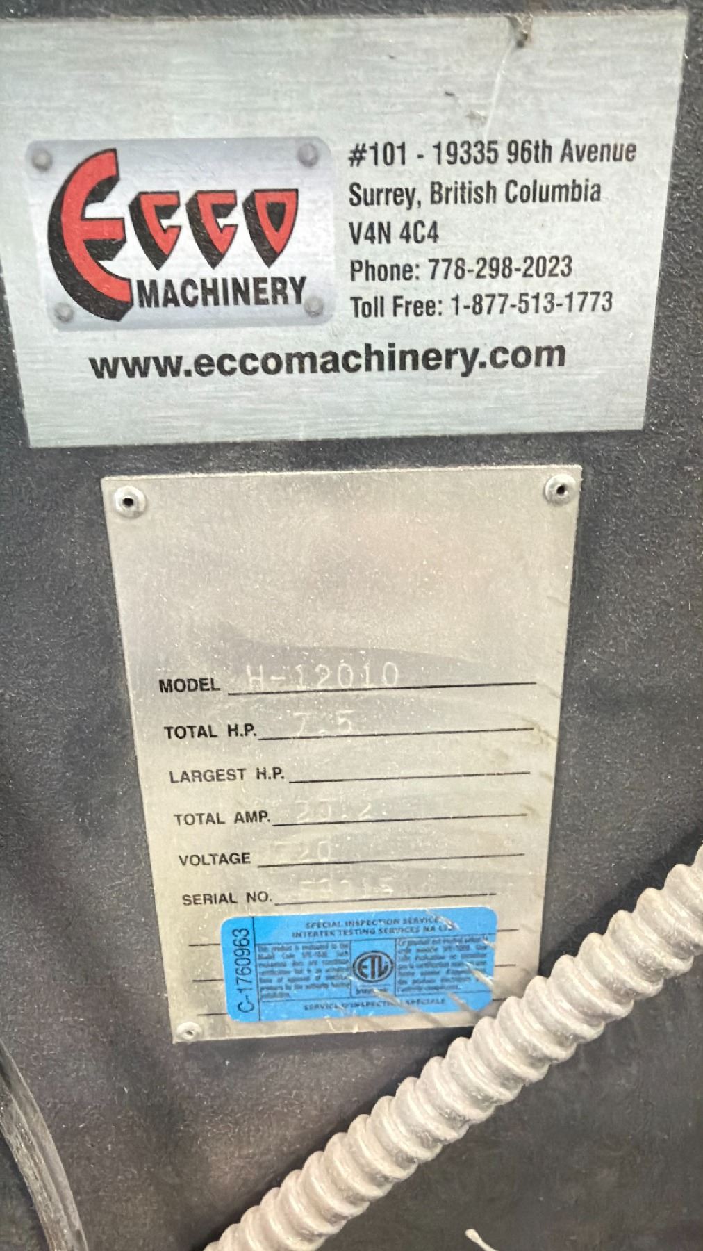 1-H-12010 ECCO 10' X 10' GA HYD SHEAR 7.5HP 220/3, MANUFACTURER ECCO HEATING PRODUCTS LTD.