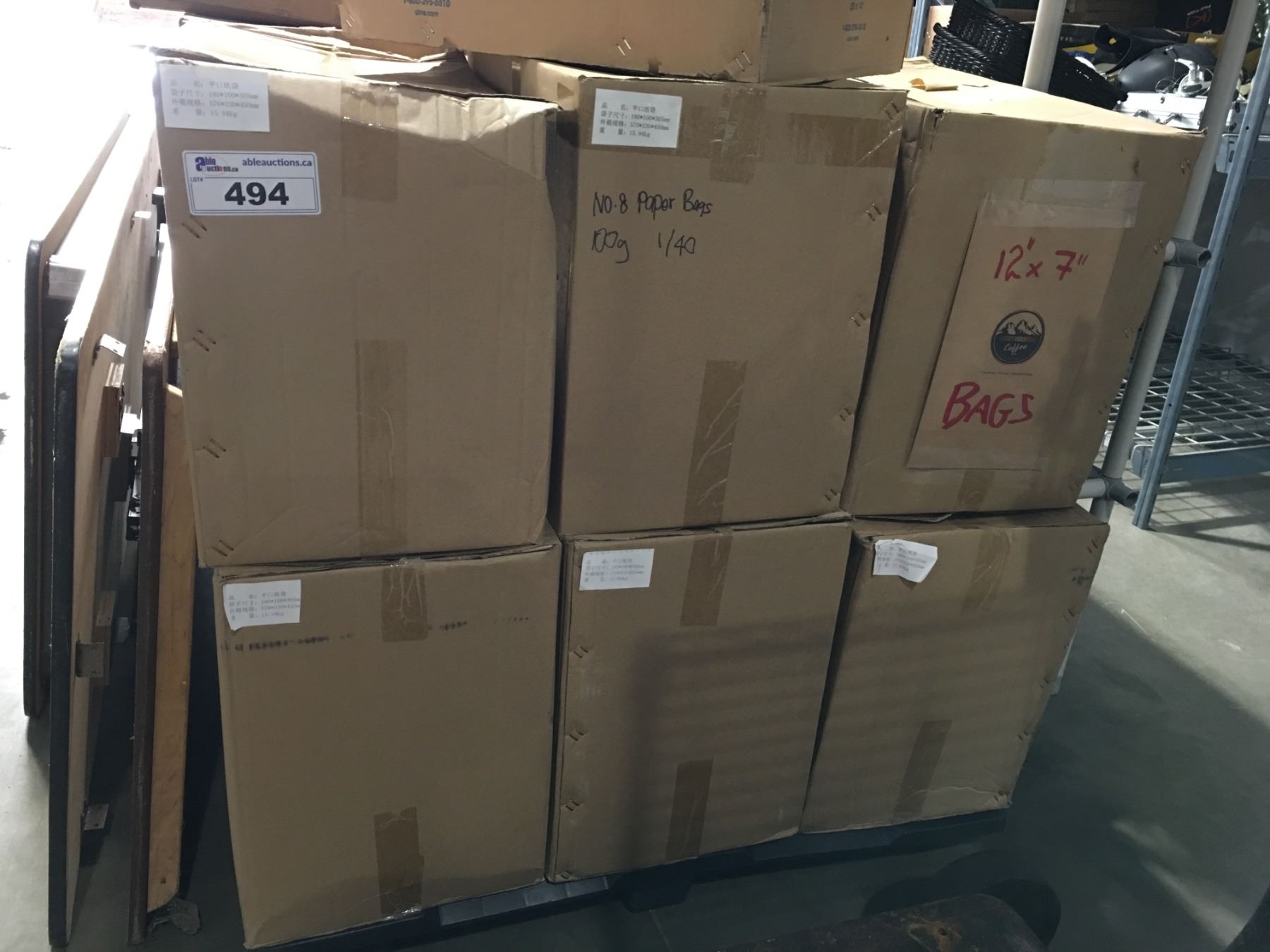 1 PALLET OF 12 BOXES OF LOGOED SMALL PAPER BAGS 12" X 7"
