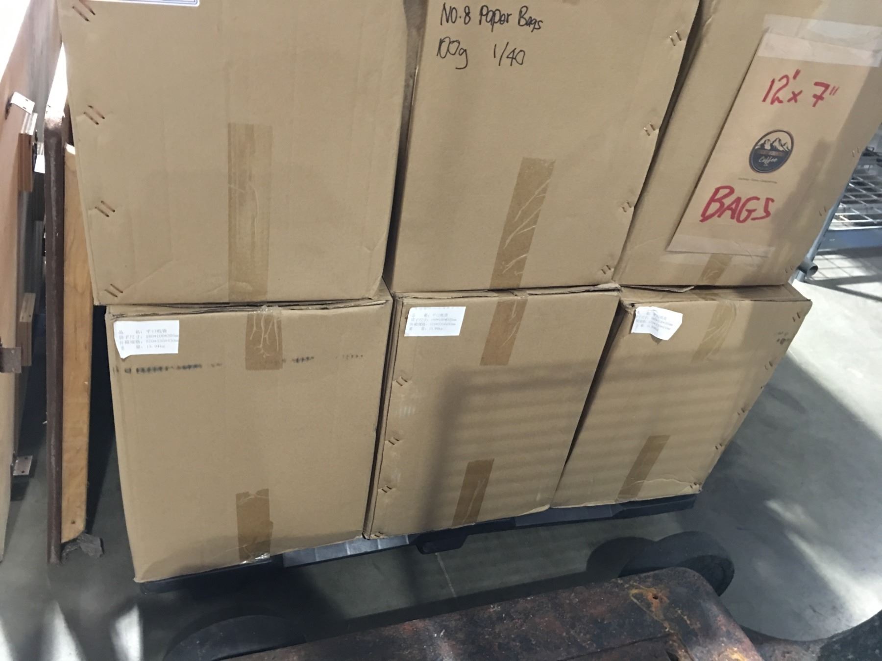 1 PALLET OF 12 BOXES OF LOGOED SMALL PAPER BAGS 12" X 7"