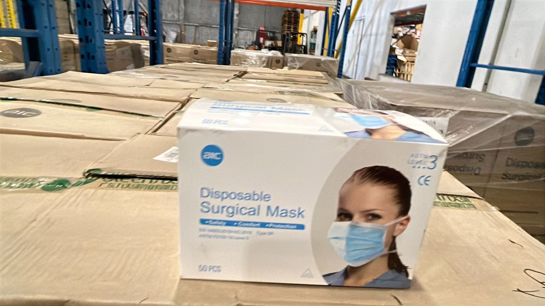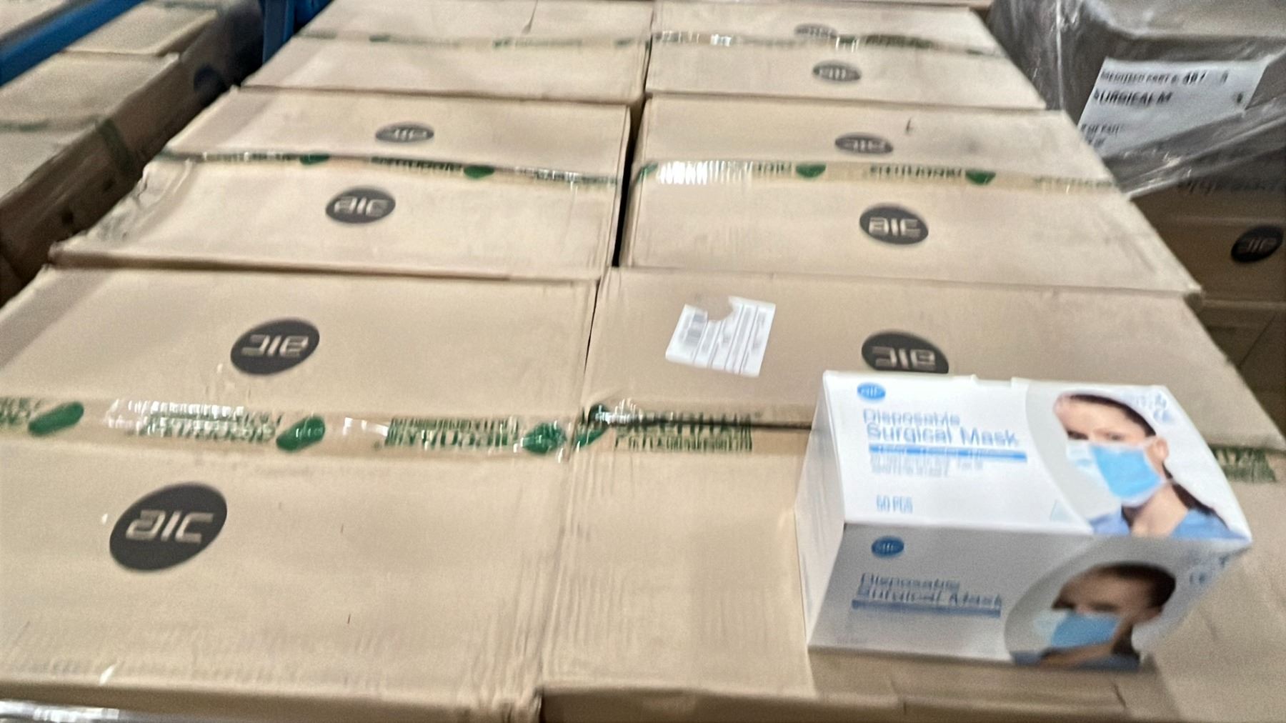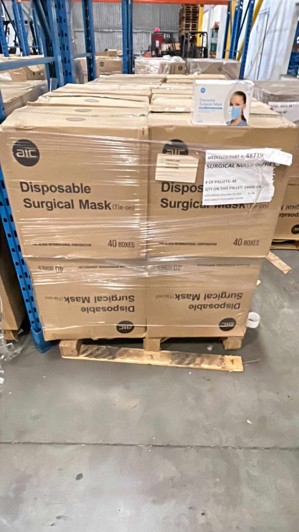 1 PALLET OF AIC DISPOSABLE SURGICAL MASKS (TIE-ON) - 12 BOXES PER PALLET/2000 PCS.PER BOX
