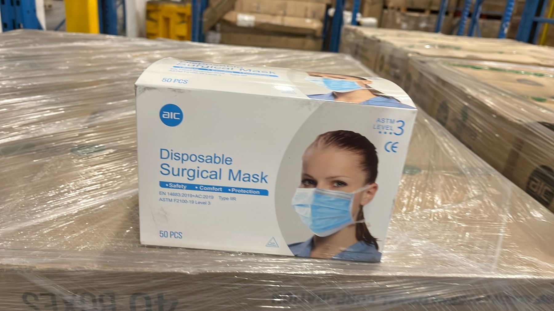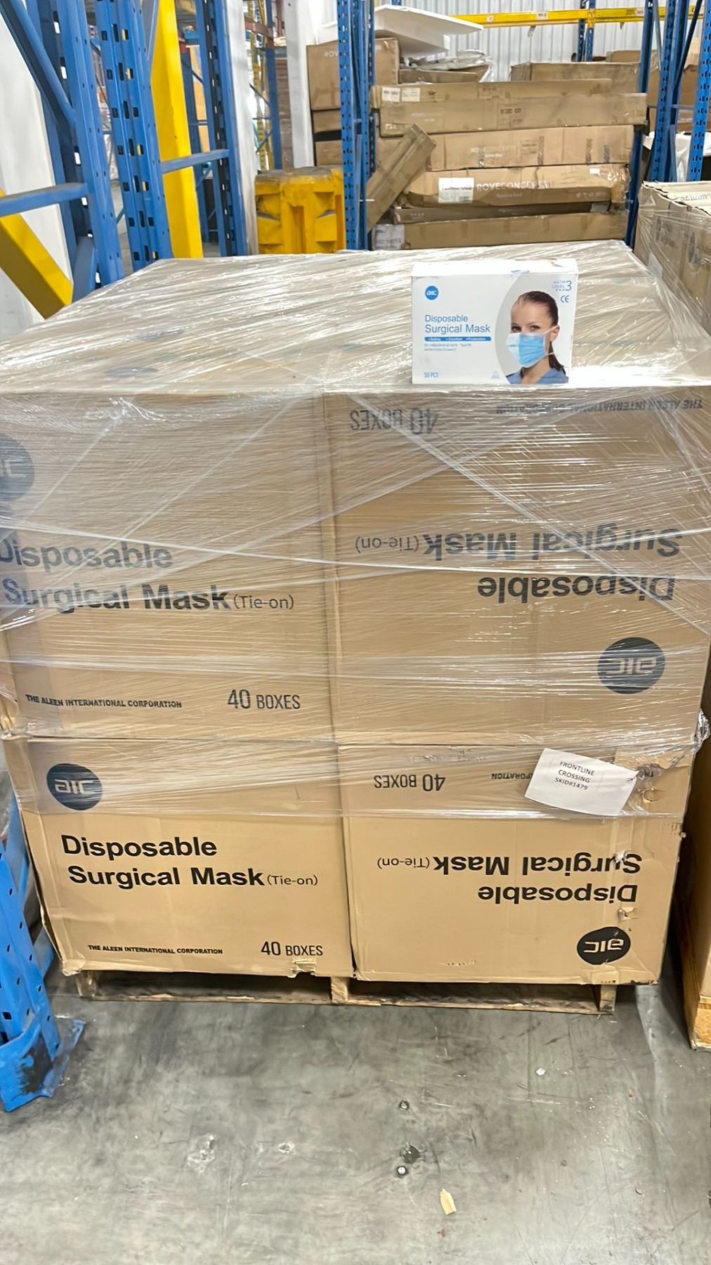 1 PALLET OF AIC DISPOSABLE SURGICAL MASKS (TIE-ON) - 12 BOXES PER PALLET/2000 PCS.PER BOX