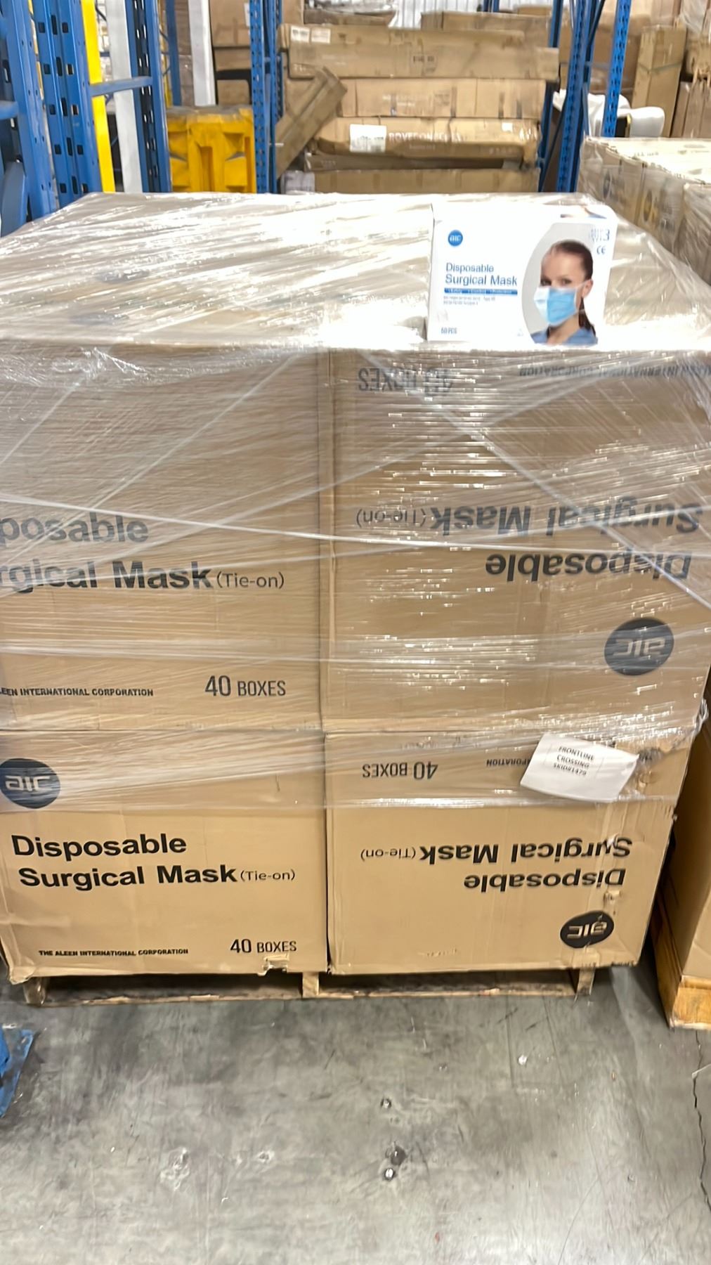 1 PALLET OF AIC DISPOSABLE SURGICAL MASKS (TIE-ON) - 12 BOXES PER PALLET/2000 PCS.PER BOX