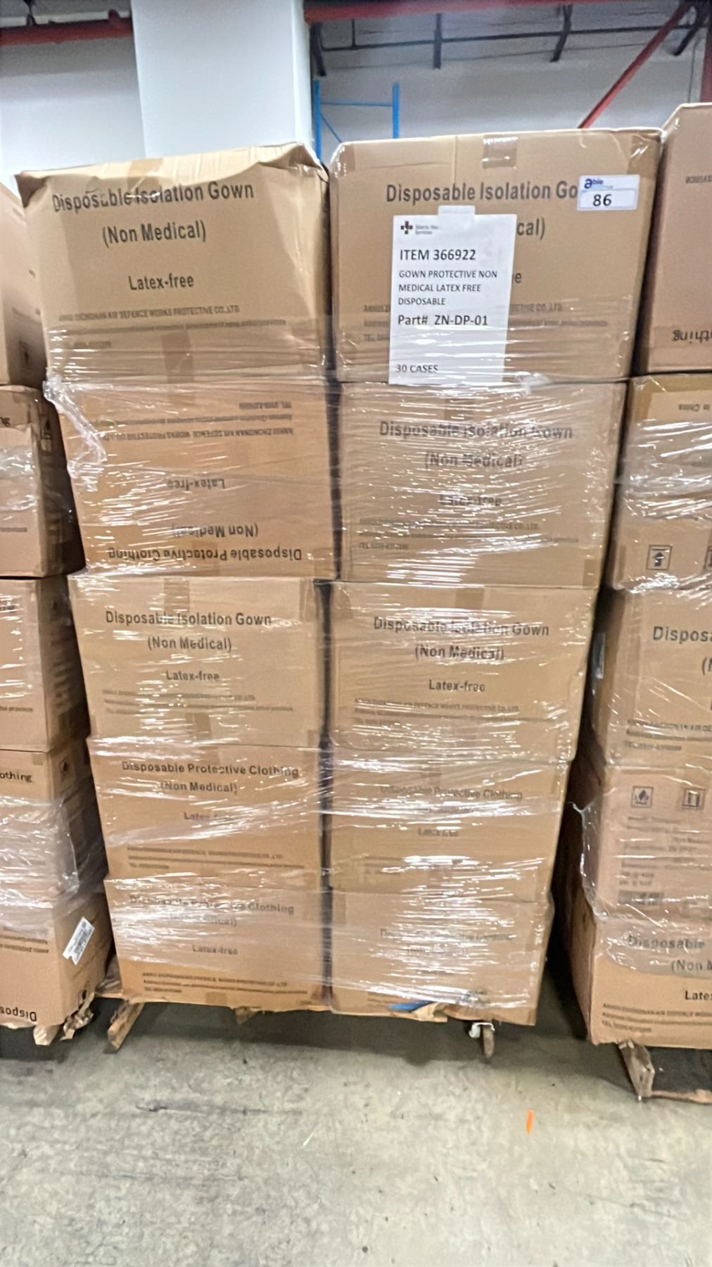 1 PALLET OF DISPOSABLE PROTECTIVE GOWNS (NON MEDICAL) - APPROX. 30 BOXES PER PALLET/120 PCS. PER BOX
