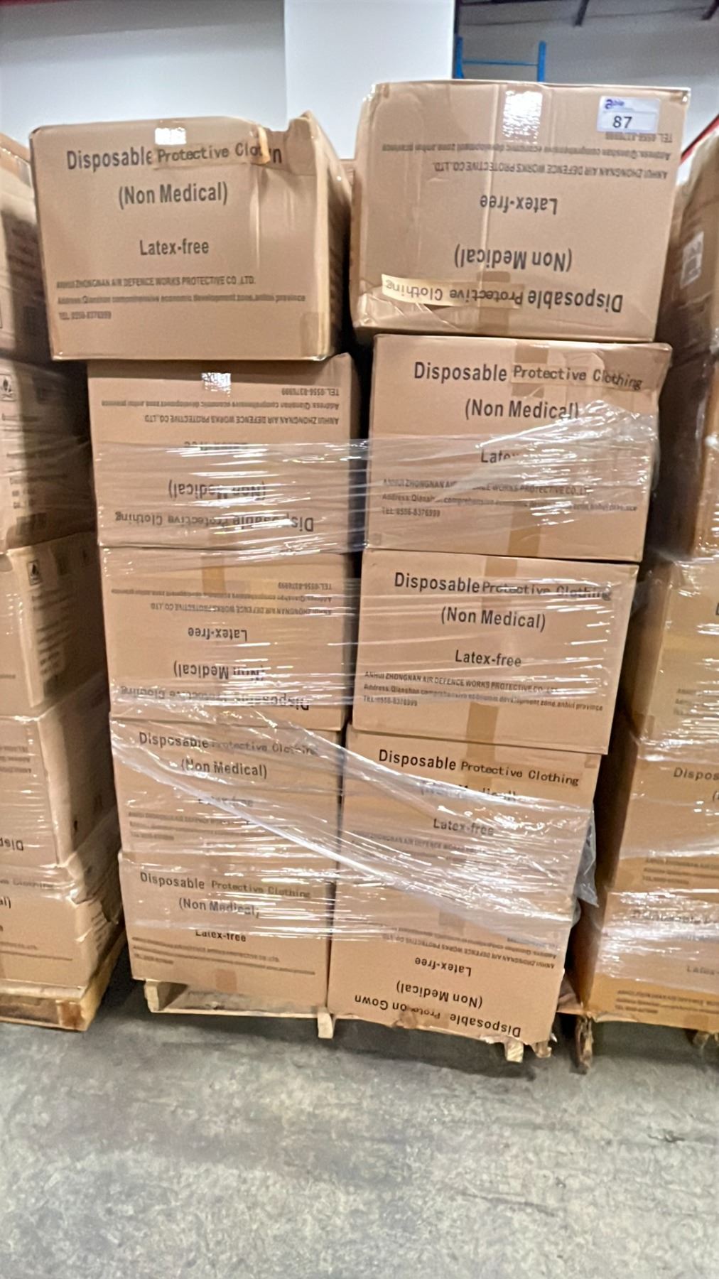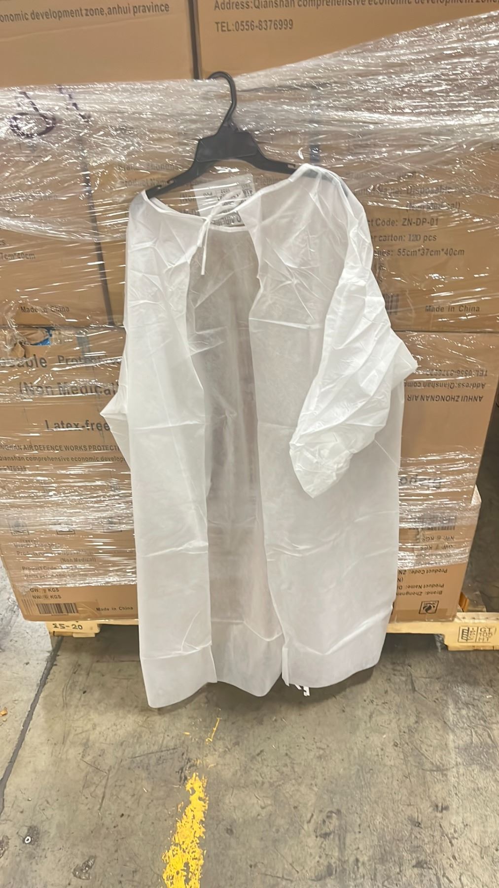 1 PALLET OF DISPOSABLE PROTECTIVE GOWNS (NON MEDICAL) - APPROX. 30 BOXES PER PALLET/120 PCS. PER BOX