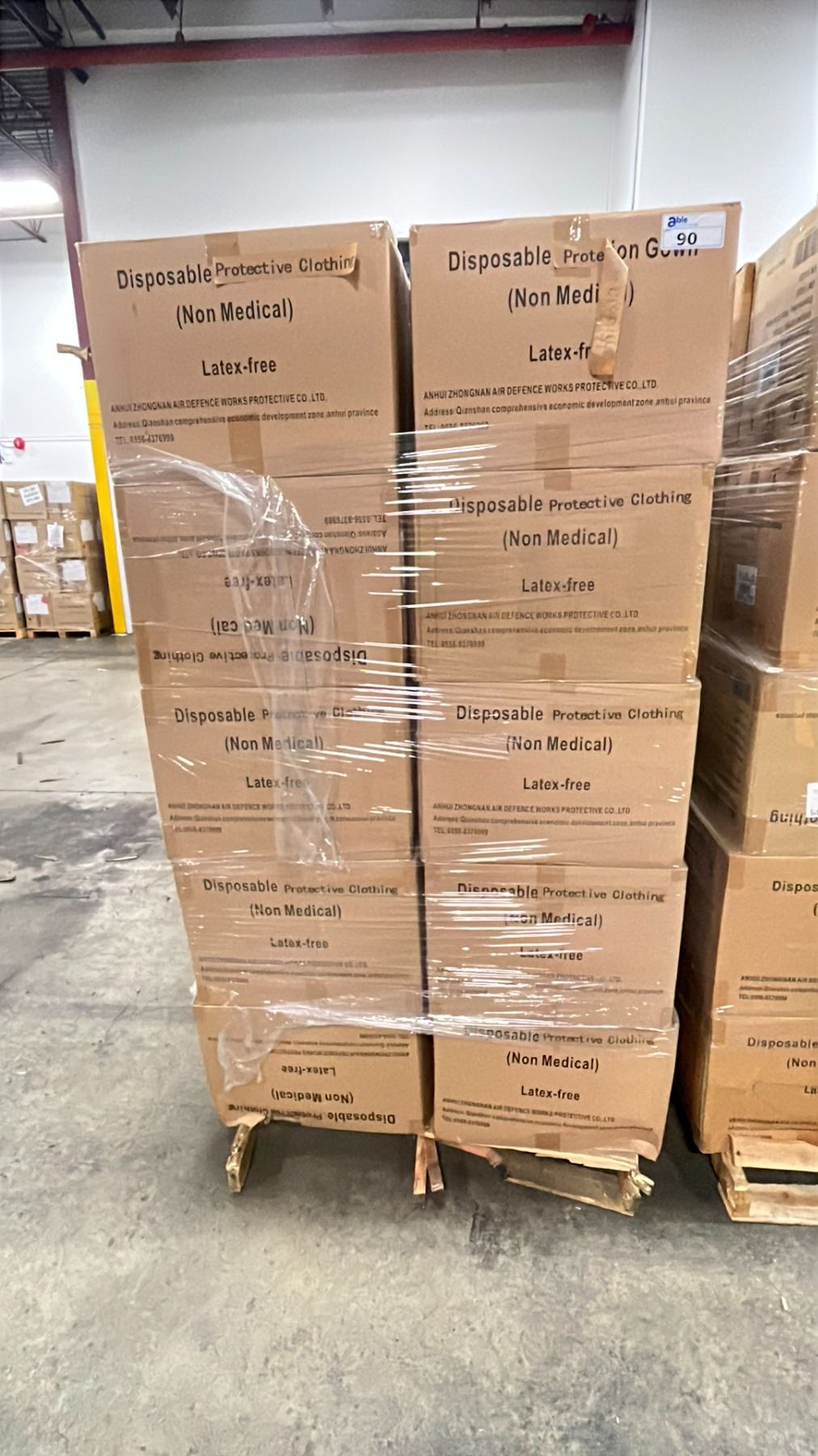 1 PALLET OF DISPOSABLE PROTECTIVE GOWNS (NON MEDICAL) - APPROX. 30 BOXES PER PALLET/120 PCS. PER BOX