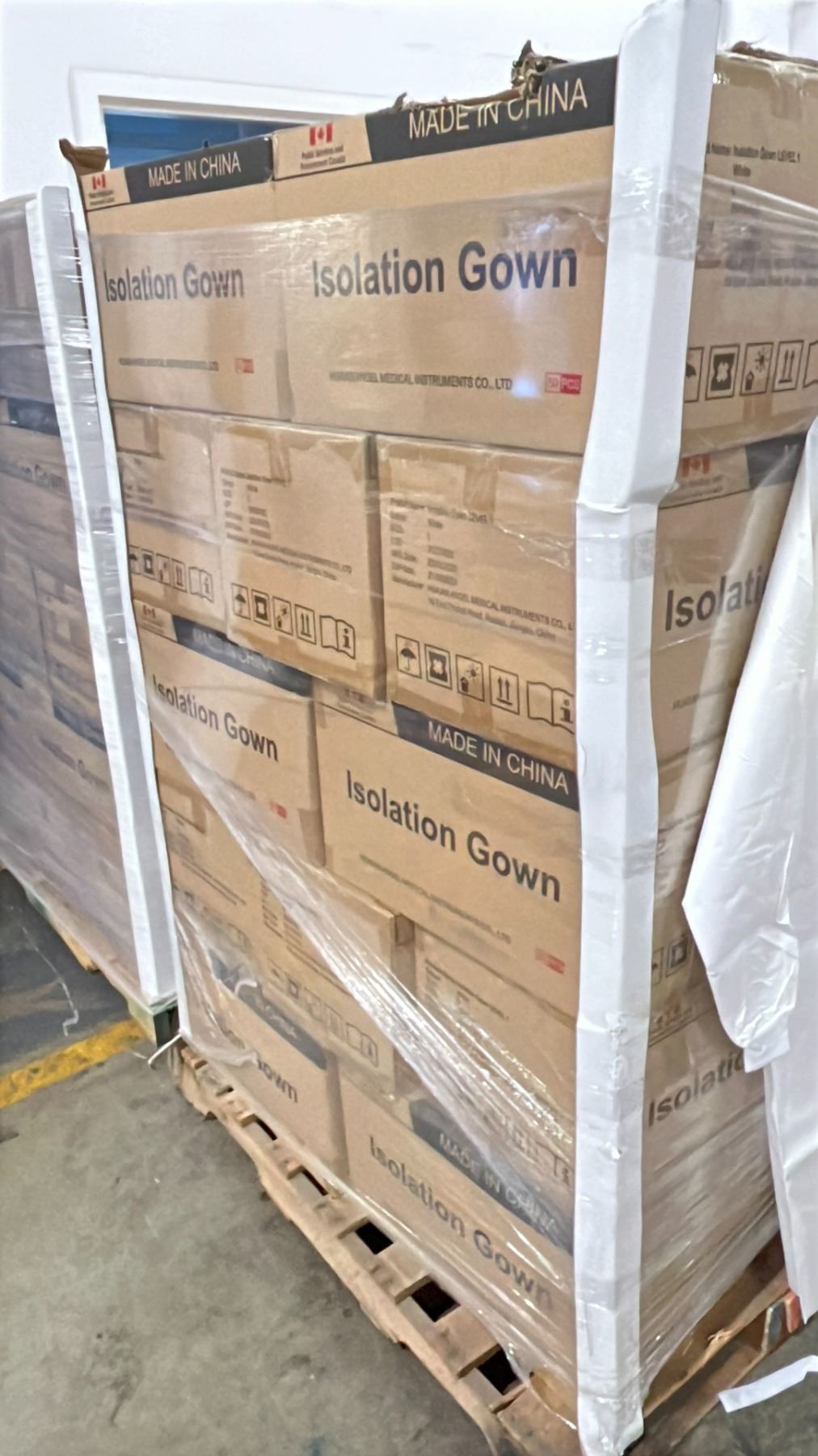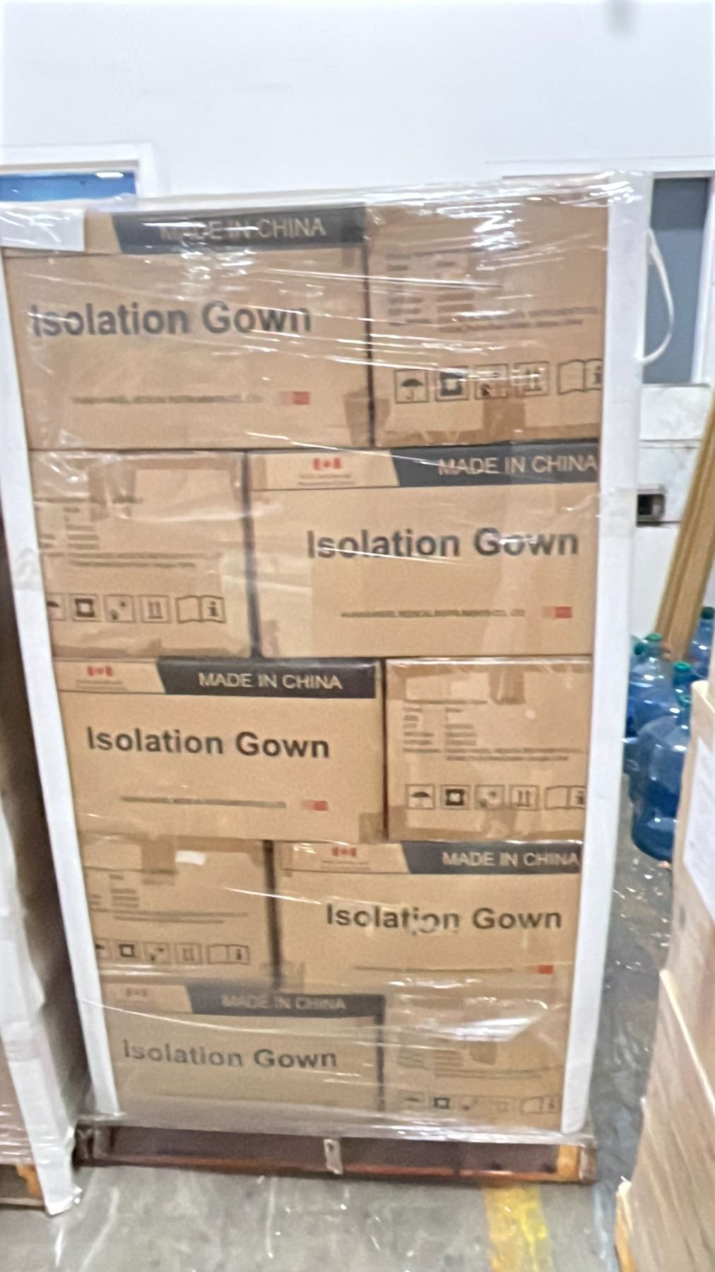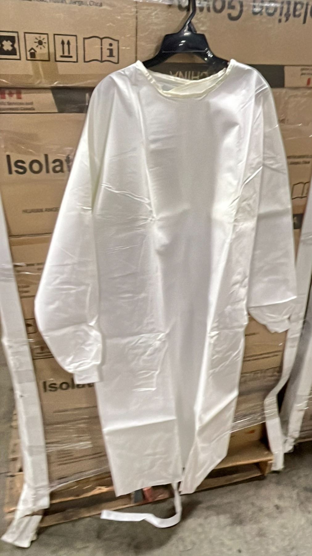 1 PALLET OF (LEVEL 1) ISOLATION GOWNS WHITE/SZ LARGE APPROX. 25 BOXES/50 PCS. PER BOX