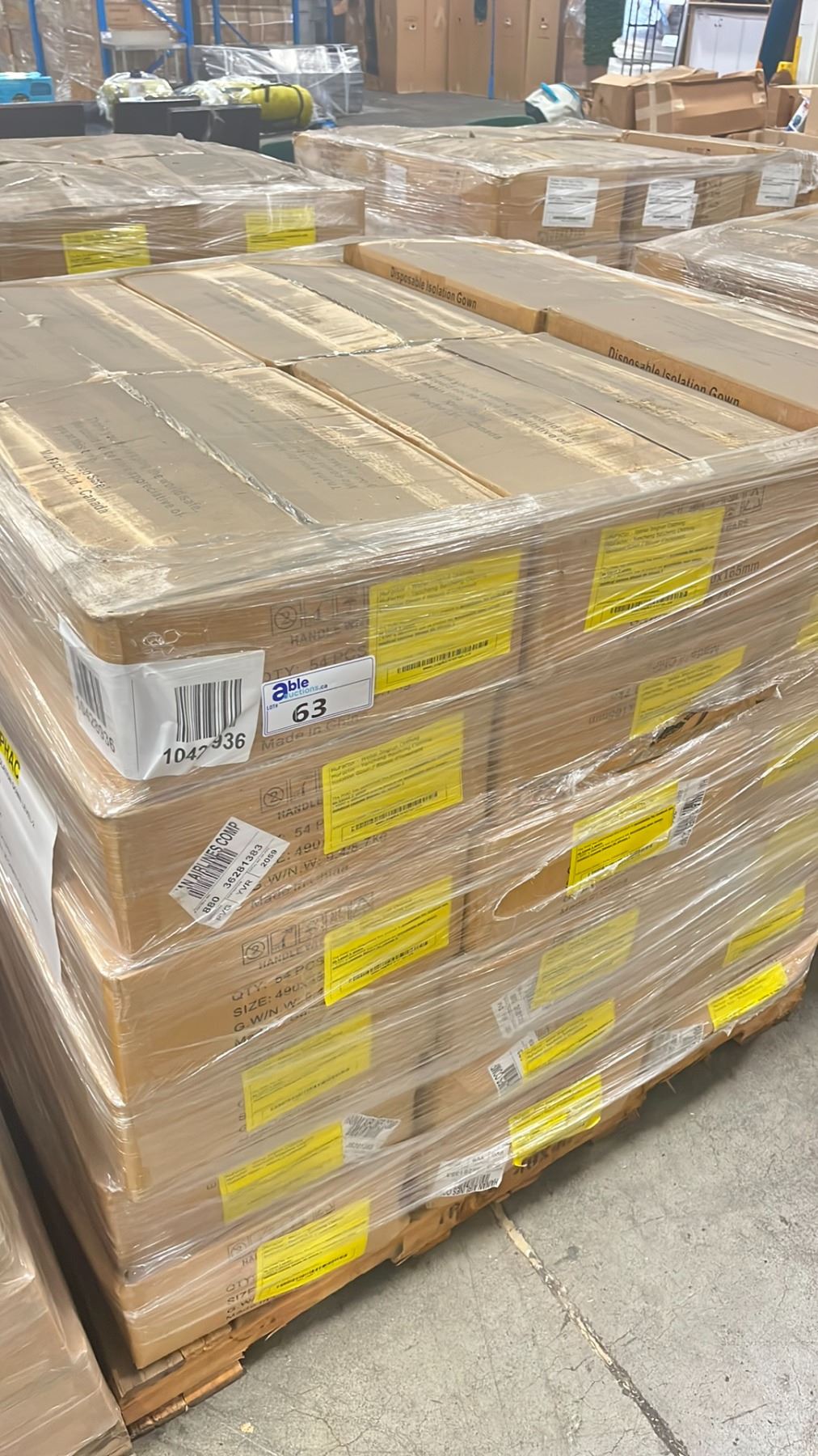 1 PALLET OF (LEVEL 2) DISPOSABLE ISOLATION GOWNS - WHITE/SZ LARGE APPROX. 36 BOXES/54 PCS. PER BOX