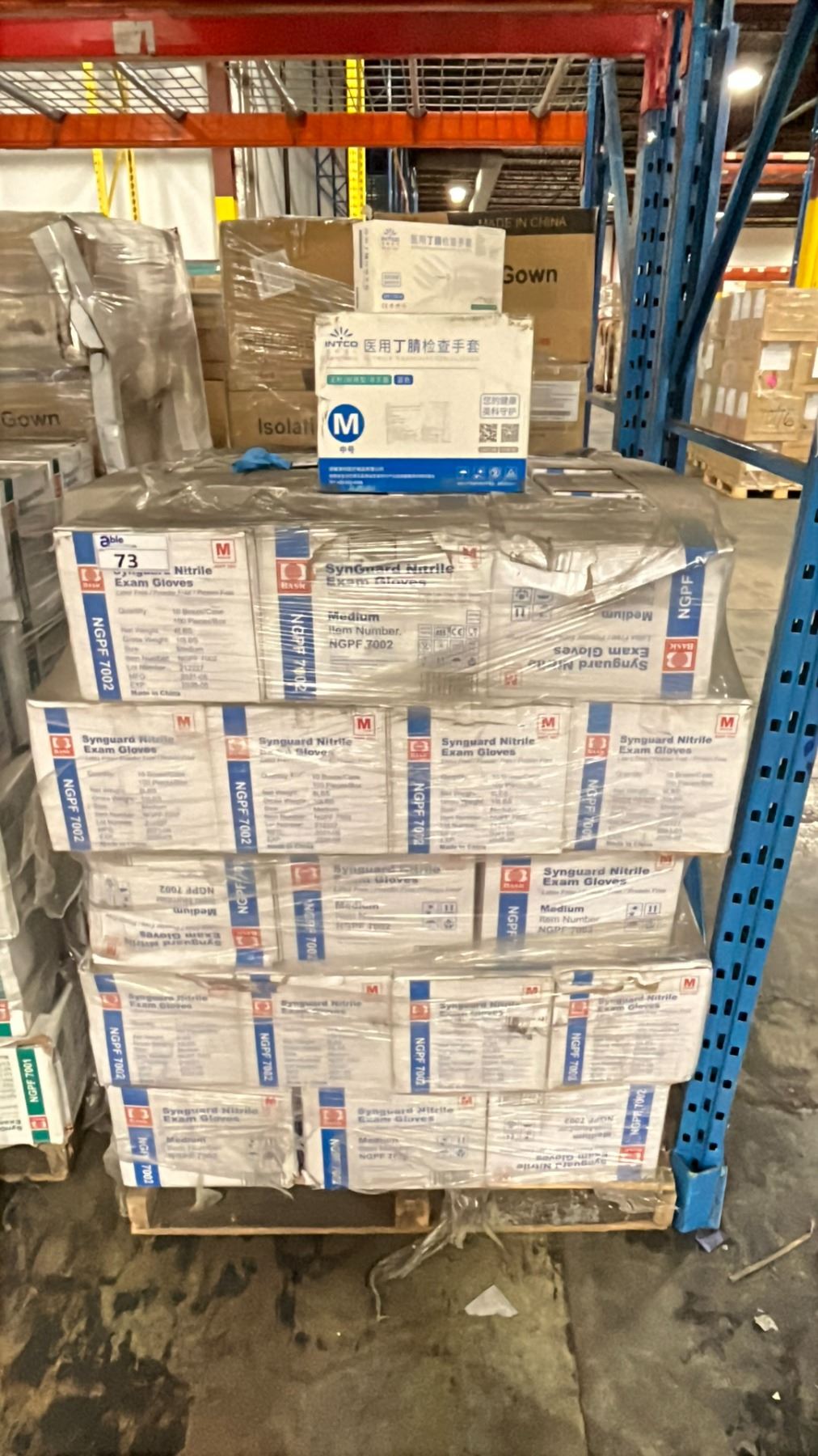 1 PALLET OF SYNGUARD NITRILE EXAM GLOVES SZ. MEDIUM - APPROX 75 BOXES/1000 PCS. PER BOX