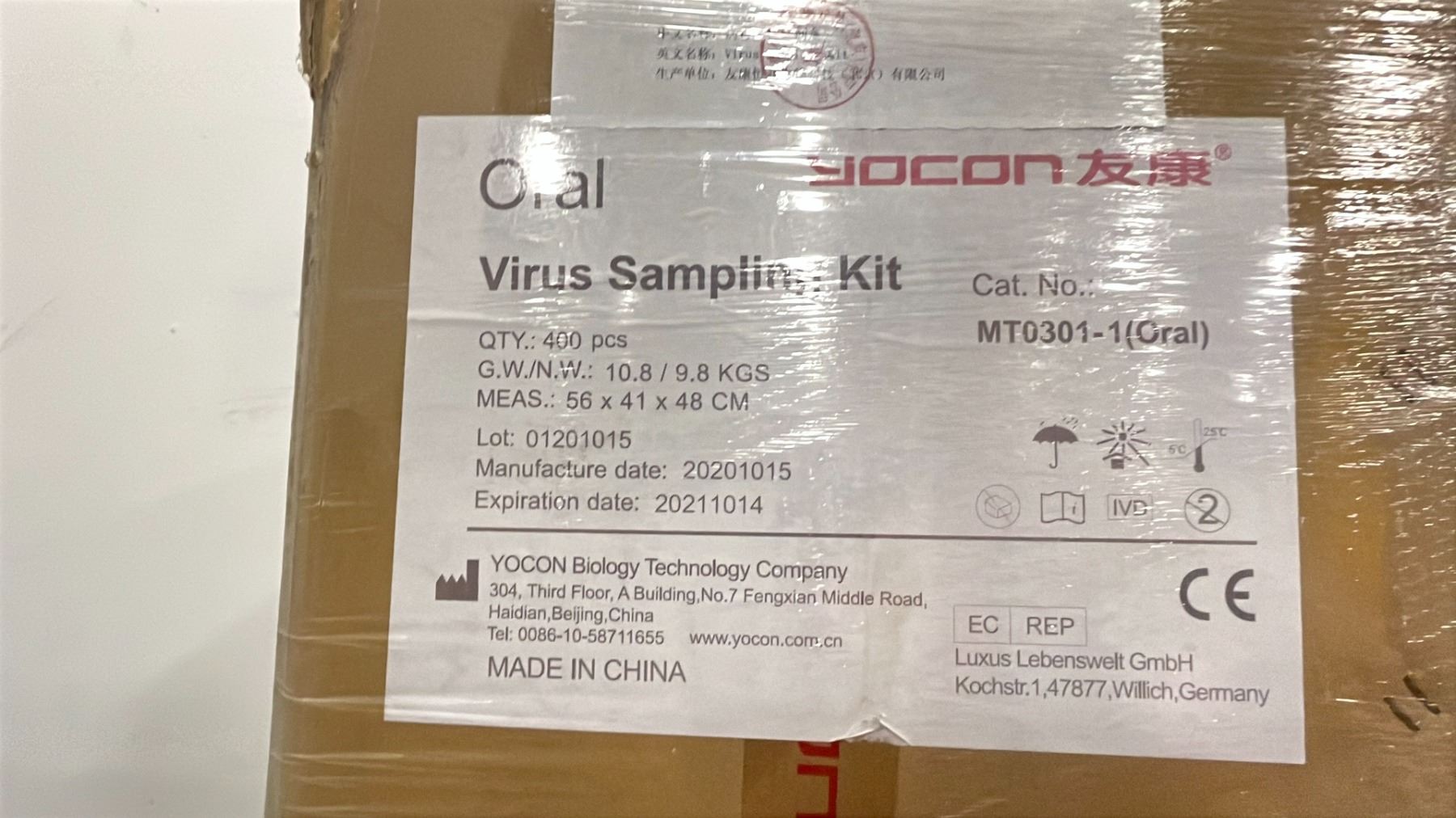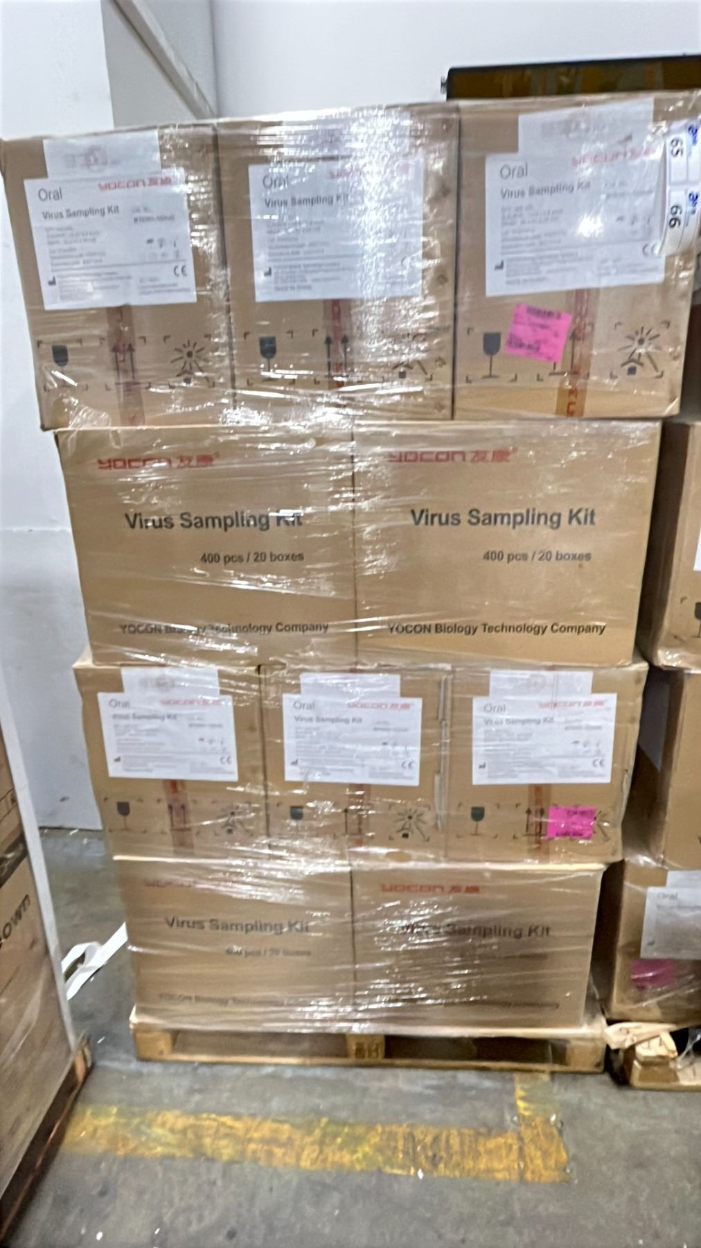 1 PALLET OF VIRUS SAMPLING KITS - APPROX. 20 BOXES/400 PCS. PER BOX