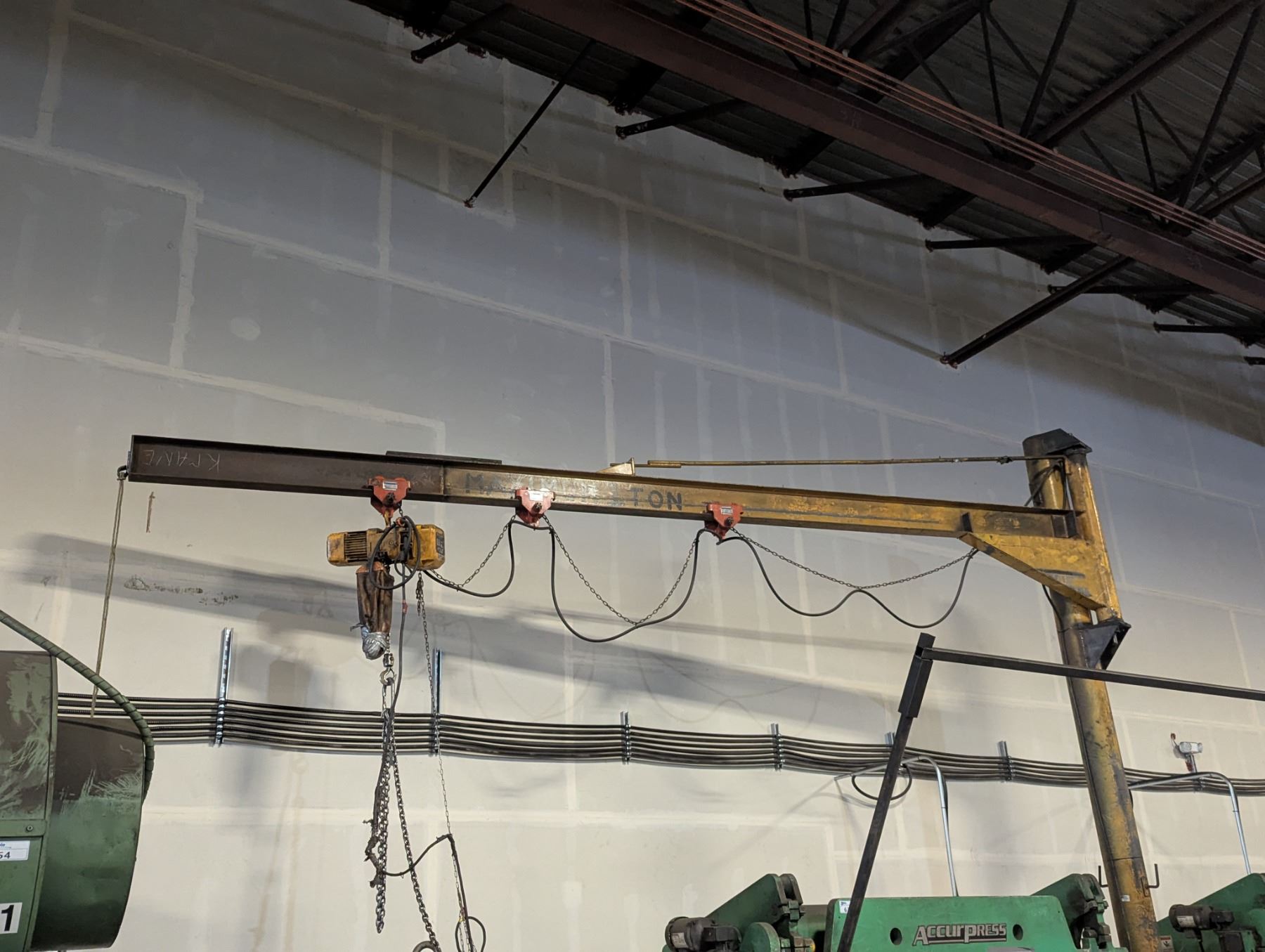 1 TON JIB CRANE WITH KITO 1/2 TON CAPACITY HOIST *CHAIN SLING ASSEMBLY NOT INCLUDED*