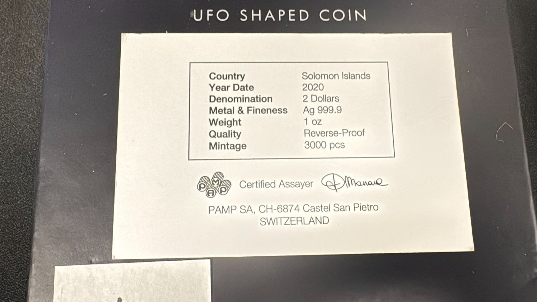 1 TROY FINE SILVER UFO SHAPED $2 COIN *TAX EXEMPT*