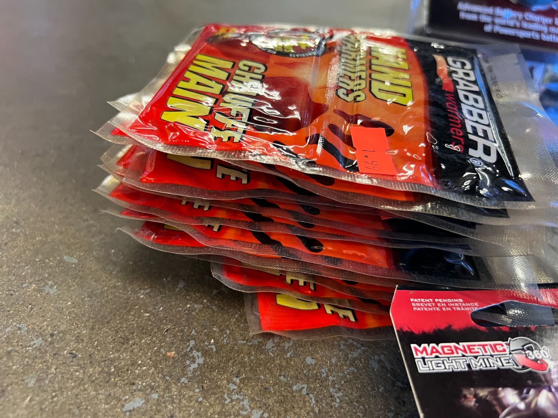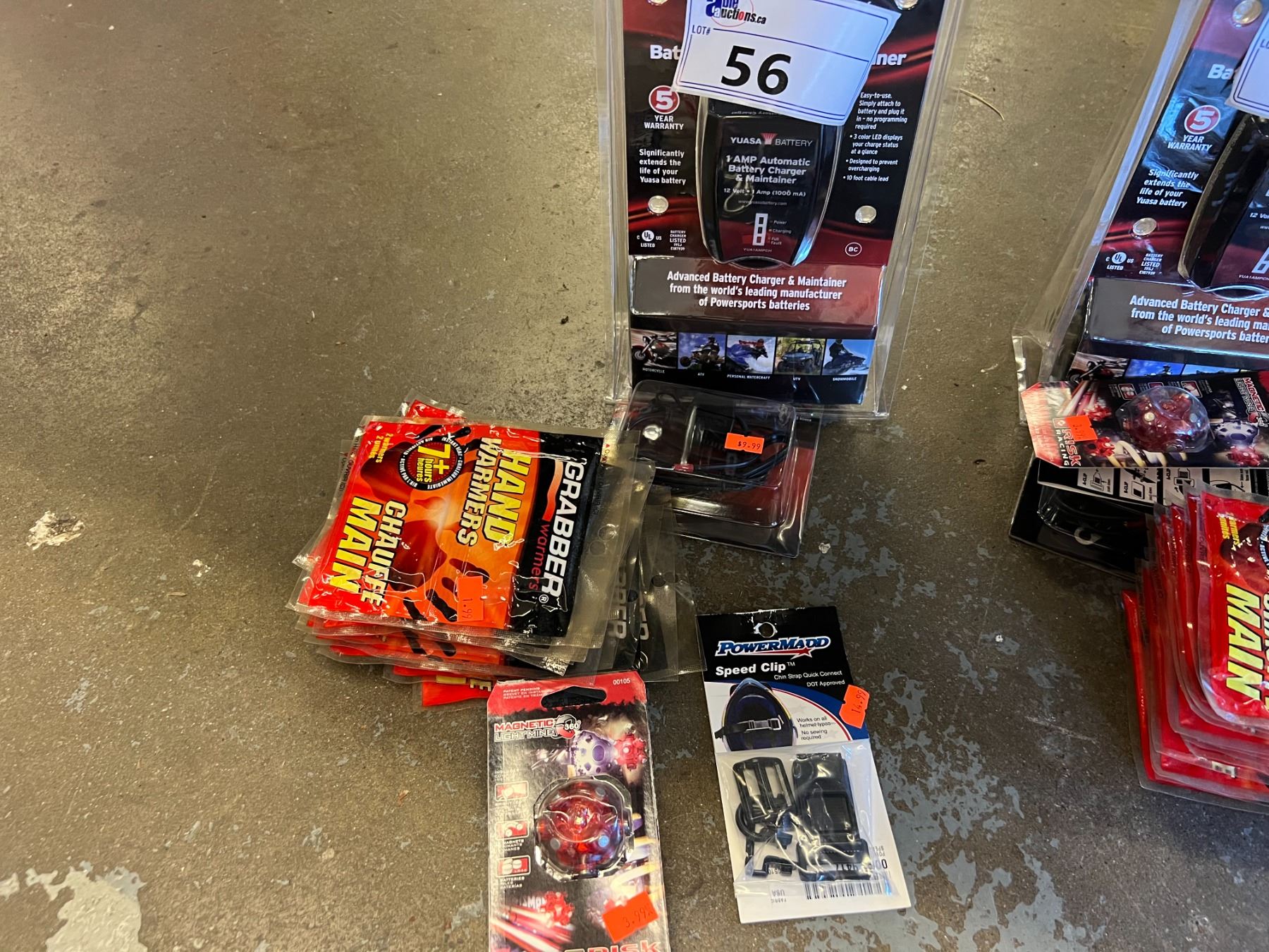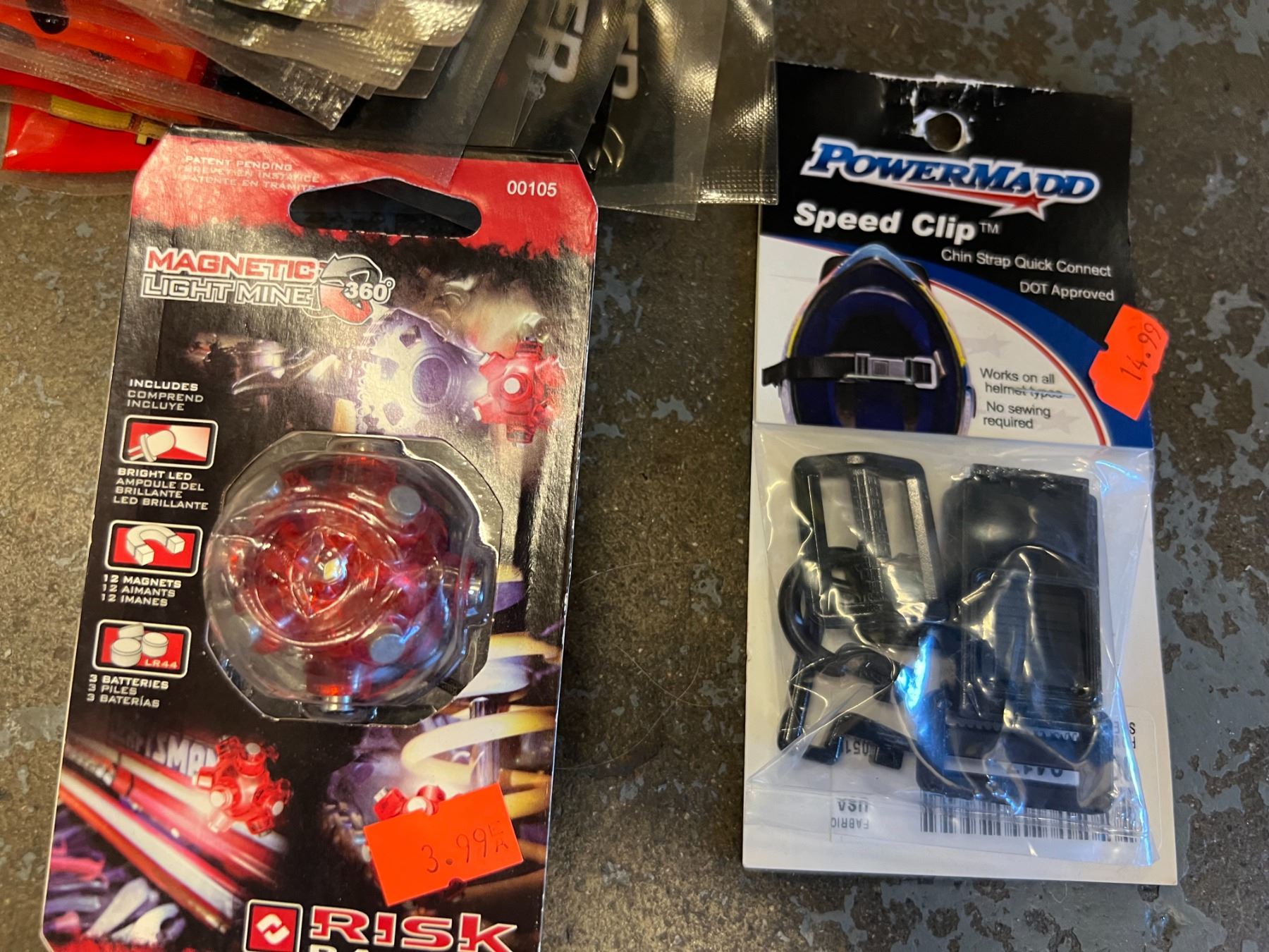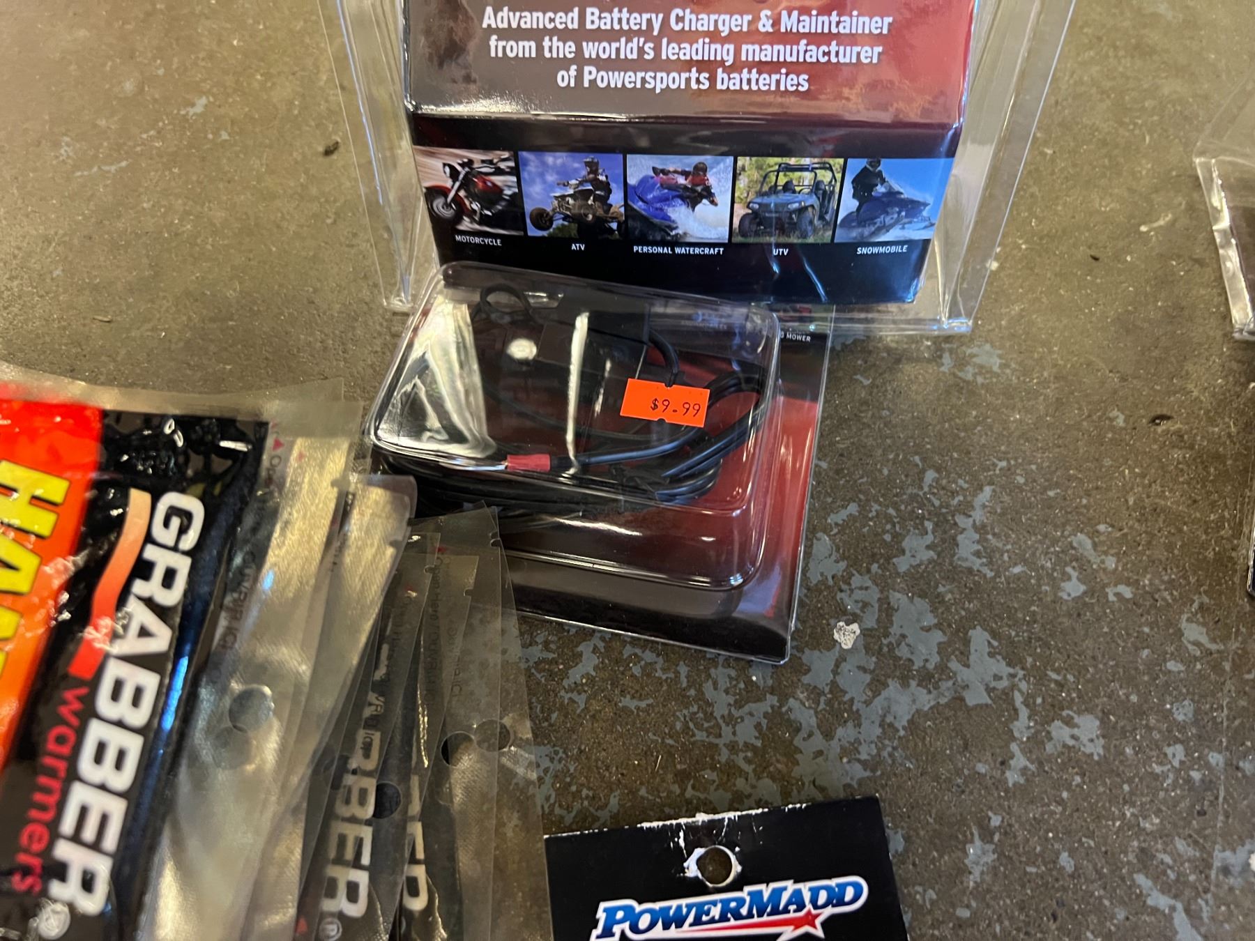 1 YUASA BATTERY MAINTAINER, 1 YUASA FUSED RING CONNECTOR, 1 SPEED CLIP QUICK CONNECT FOR HELMET, 1 MAGNETIC LIGHT MINE, 14 HAND WARMER POUCHES