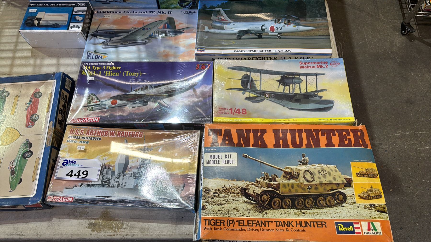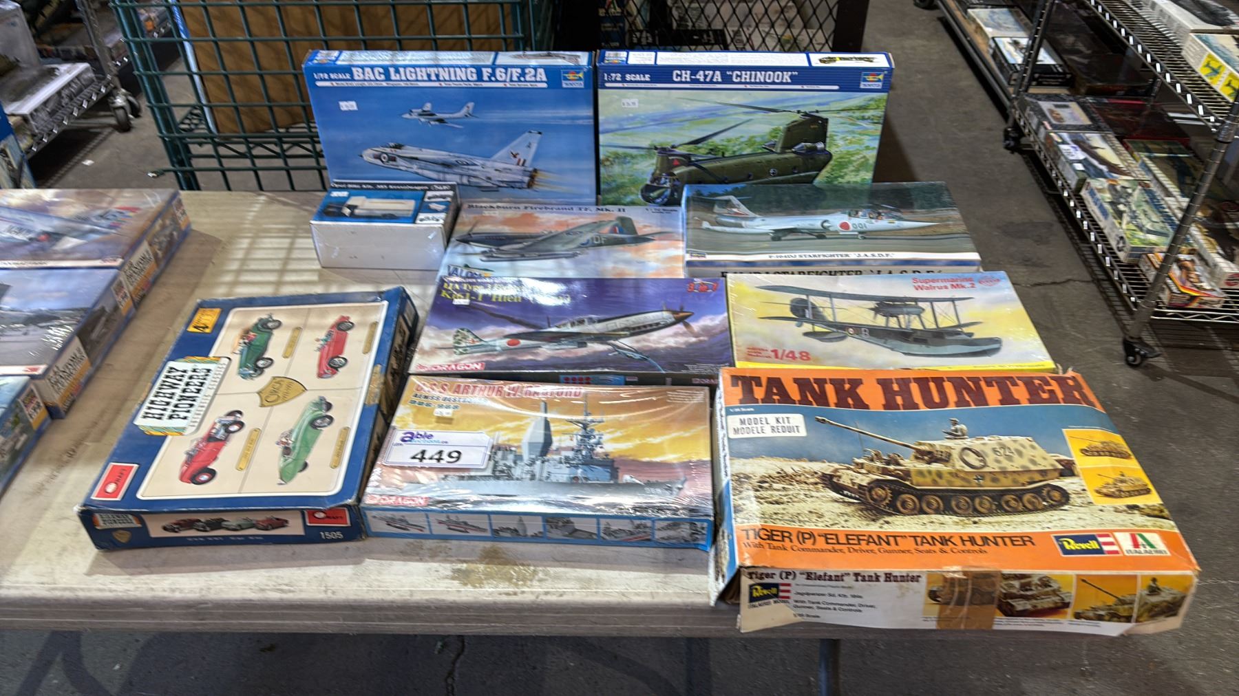 (10) ASSORTED AIRPLANE, MILITARY VEHICLE & CAR MODEL KITS
